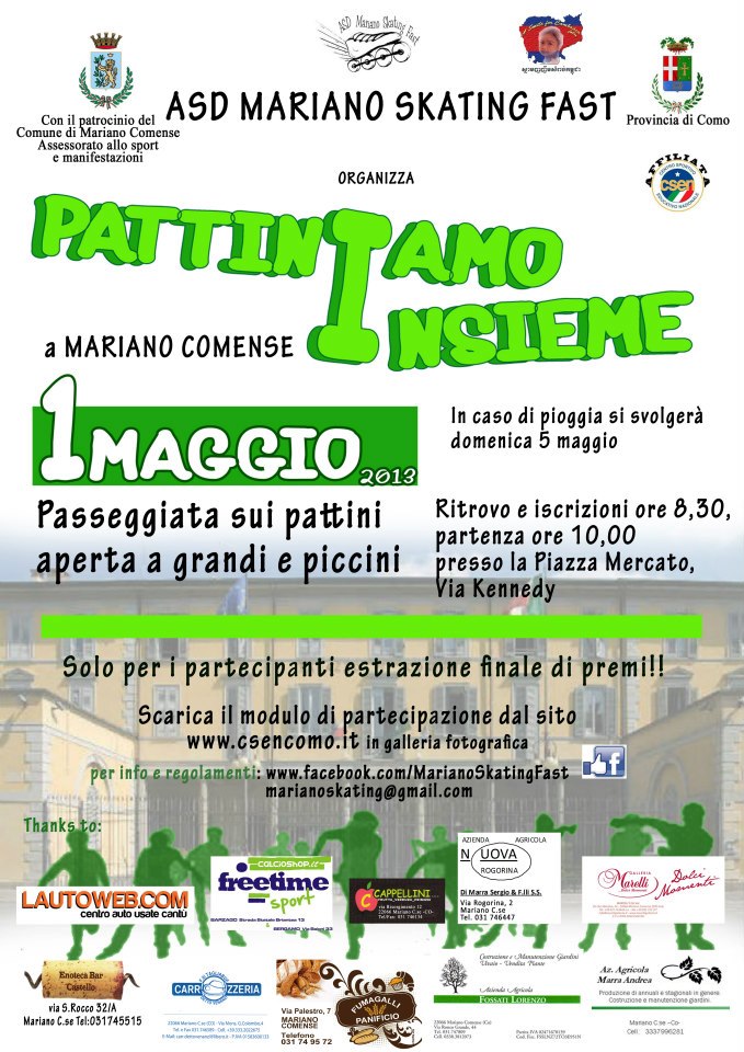 01/05/2014 1° maggio con Mariano Skating Fast per “Pattiniamo Insieme” presso piazza mercato di Mariano Comense.