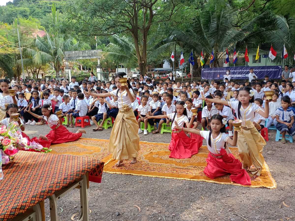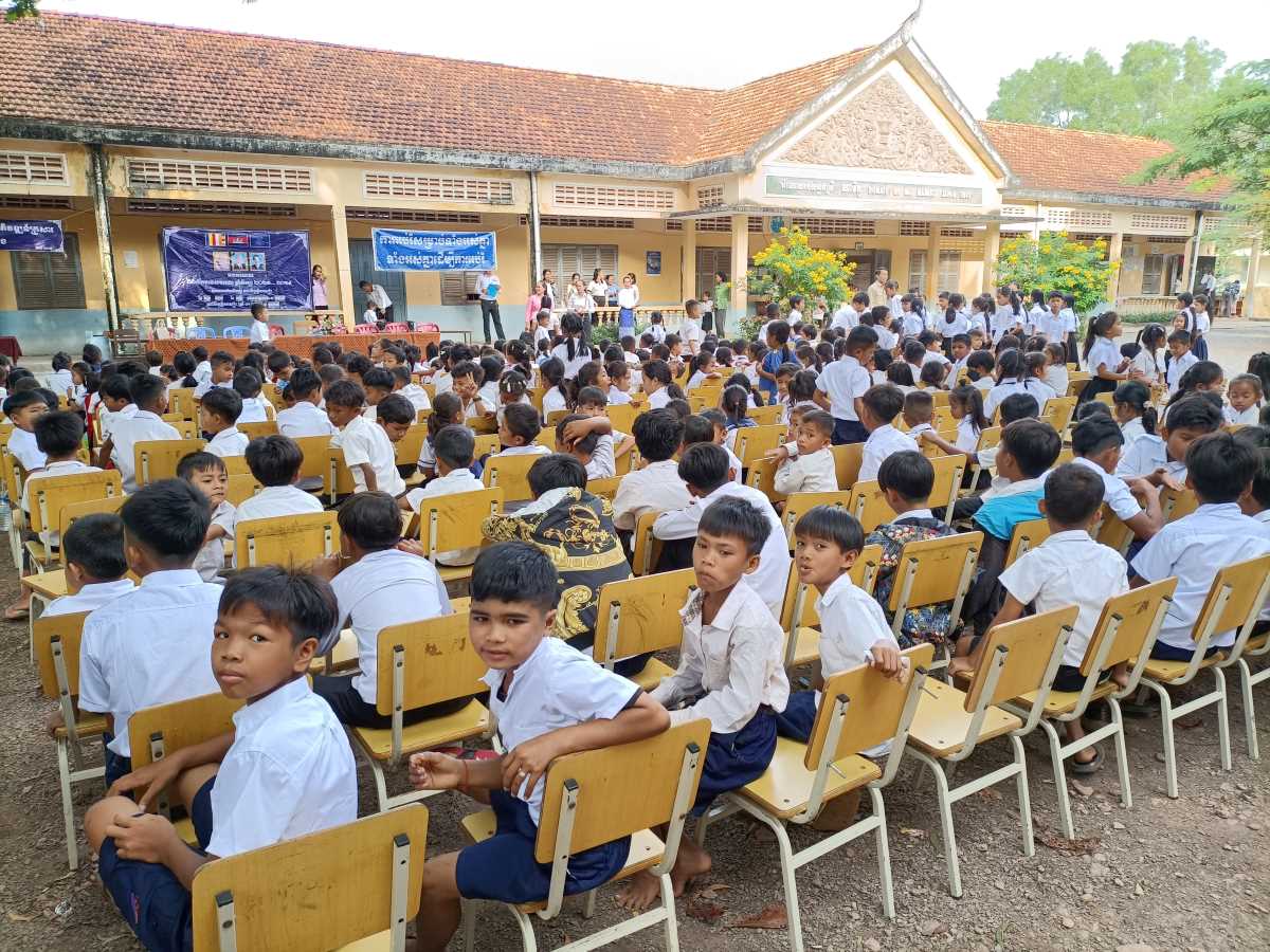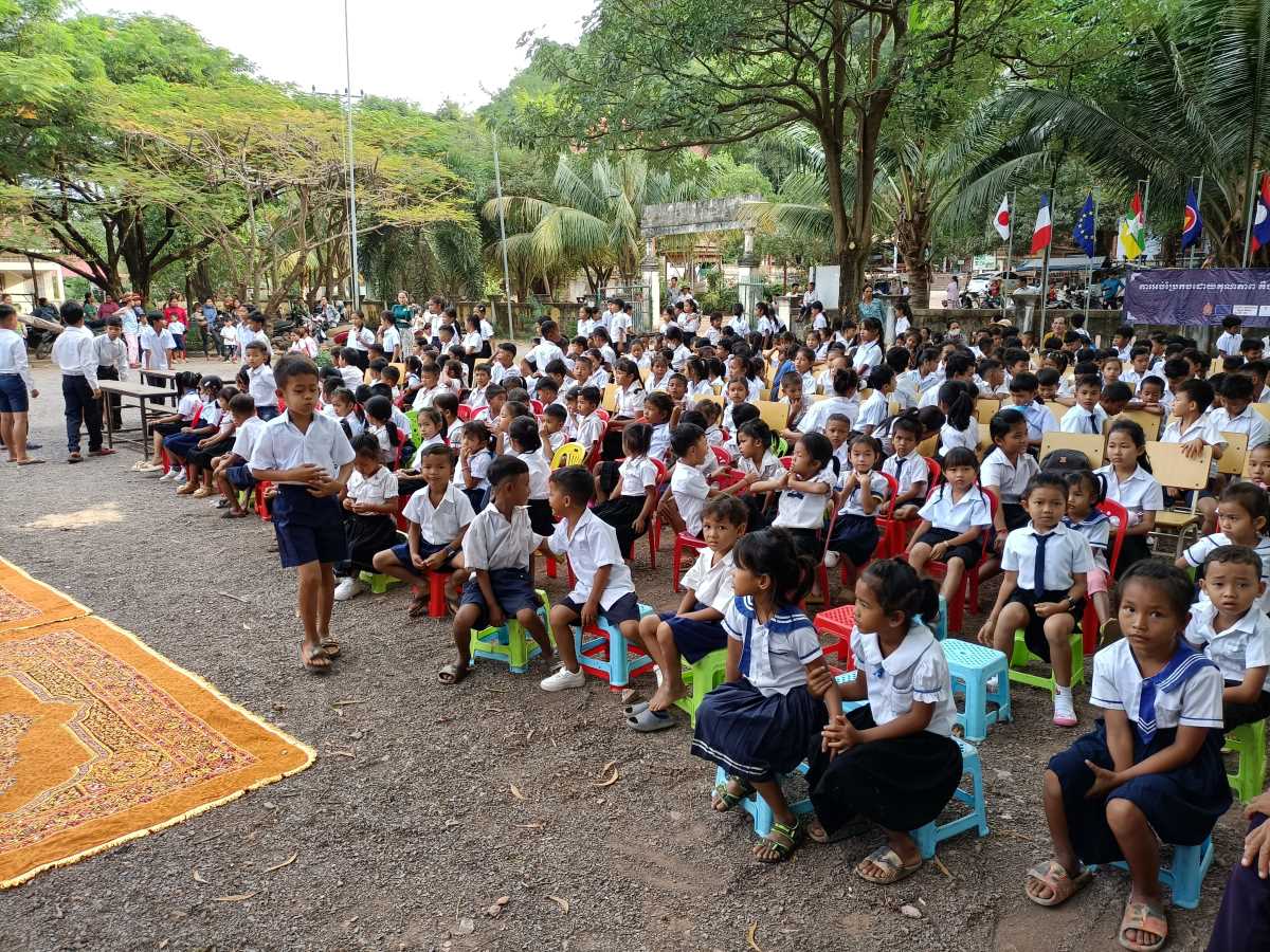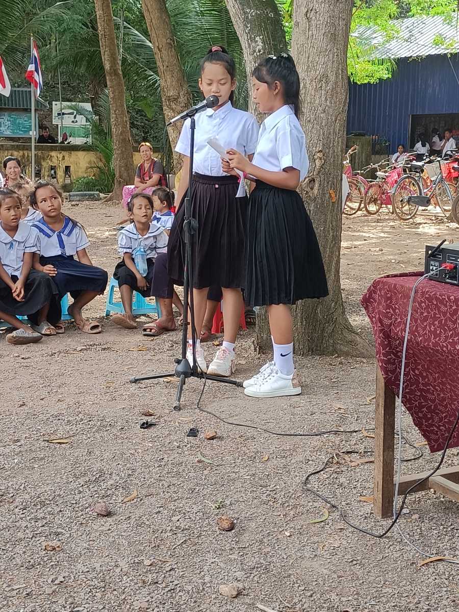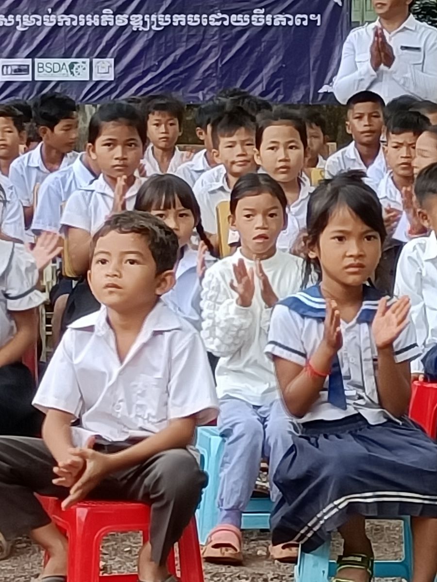 Poi è la volta dei discorsi. Prima quattro bambine che leggono un documento sull’utilità di andare a scuola. A loro è stato dato il ruolo di rappresentare tutti gli alunni della scuola. Poi è la volta del direttore scolastico in pectore e ancora di due bambine che intonano una canzone il cui testo racconta di cosa può succedere se non si va a scuola. A chiudere il round degli interventi il rappresentante del distretto scolastico che legge il messaggio a tutti gli studenti del Primo Ministro Hun Maneth (entrato in carica la scorsa primavera, dopo il “ritiro” del padre Hun Sen che ha governato il Paese per quasi 50 anni e che adesso ha assunto il ruolo di consulente speciale del Re Sihamoni).