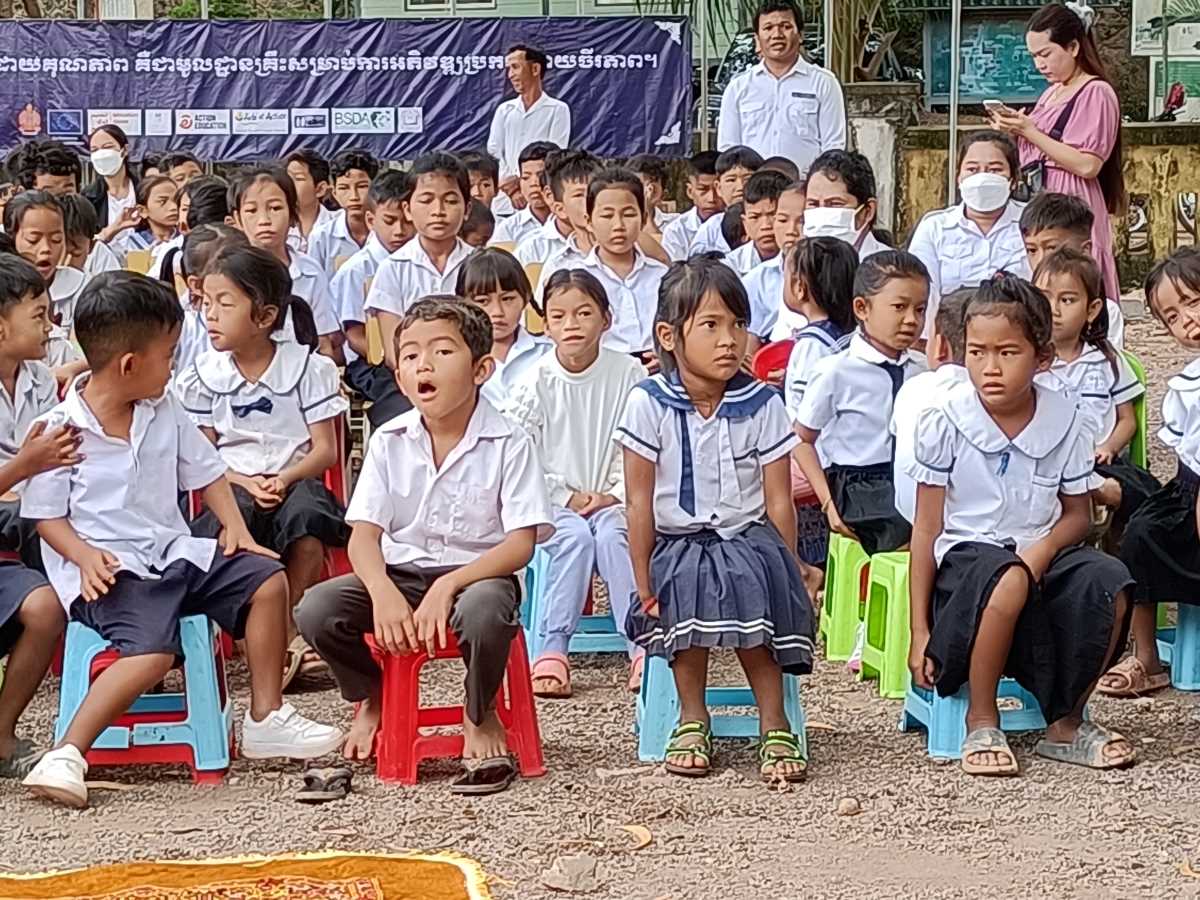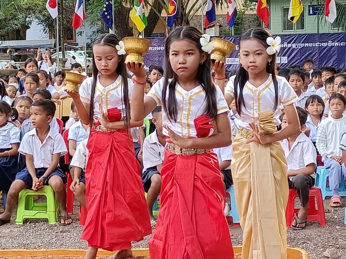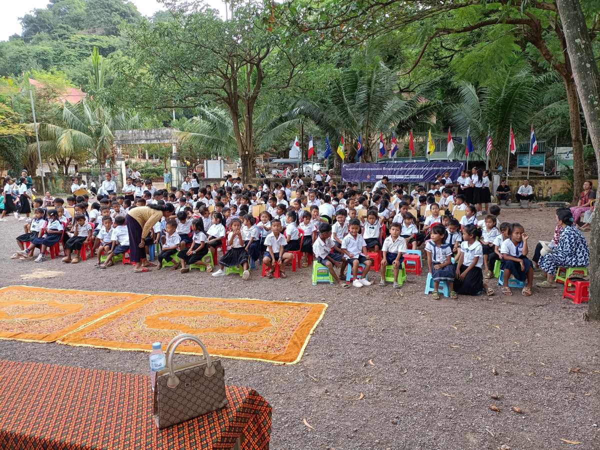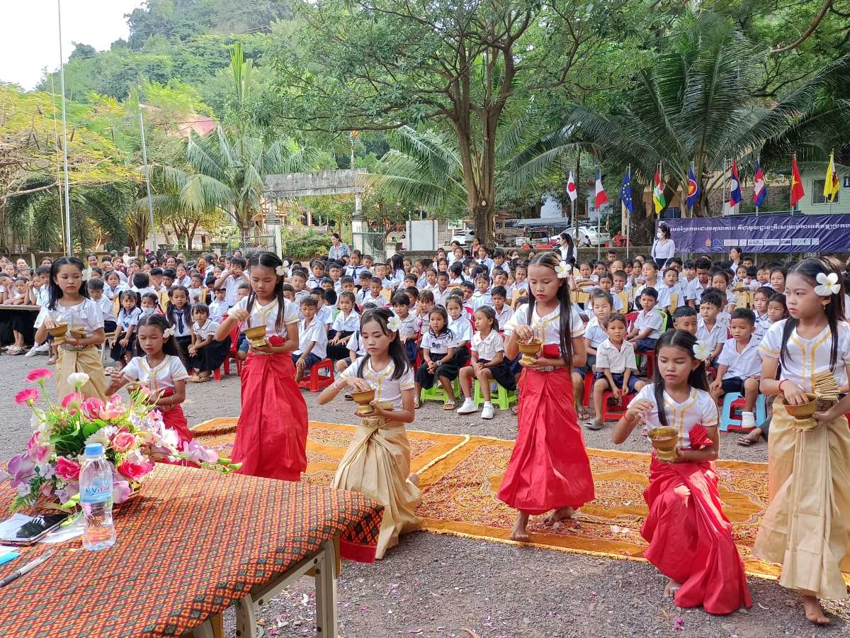 Poi è la volta dei discorsi. Prima quattro bambine che leggono un documento sull’utilità di andare a scuola. A loro è stato dato il ruolo di rappresentare tutti gli alunni della scuola. Poi è la volta del direttore scolastico in pectore e ancora di due bambine che intonano una canzone il cui testo racconta di cosa può succedere se non si va a scuola. A chiudere il round degli interventi il rappresentante del distretto scolastico che legge il messaggio a tutti gli studenti del Primo Ministro Hun Maneth (entrato in carica la scorsa primavera, dopo il “ritiro” del padre Hun Sen che ha governato il Paese per quasi 50 anni e che adesso ha assunto il ruolo di consulente speciale del Re Sihamoni).