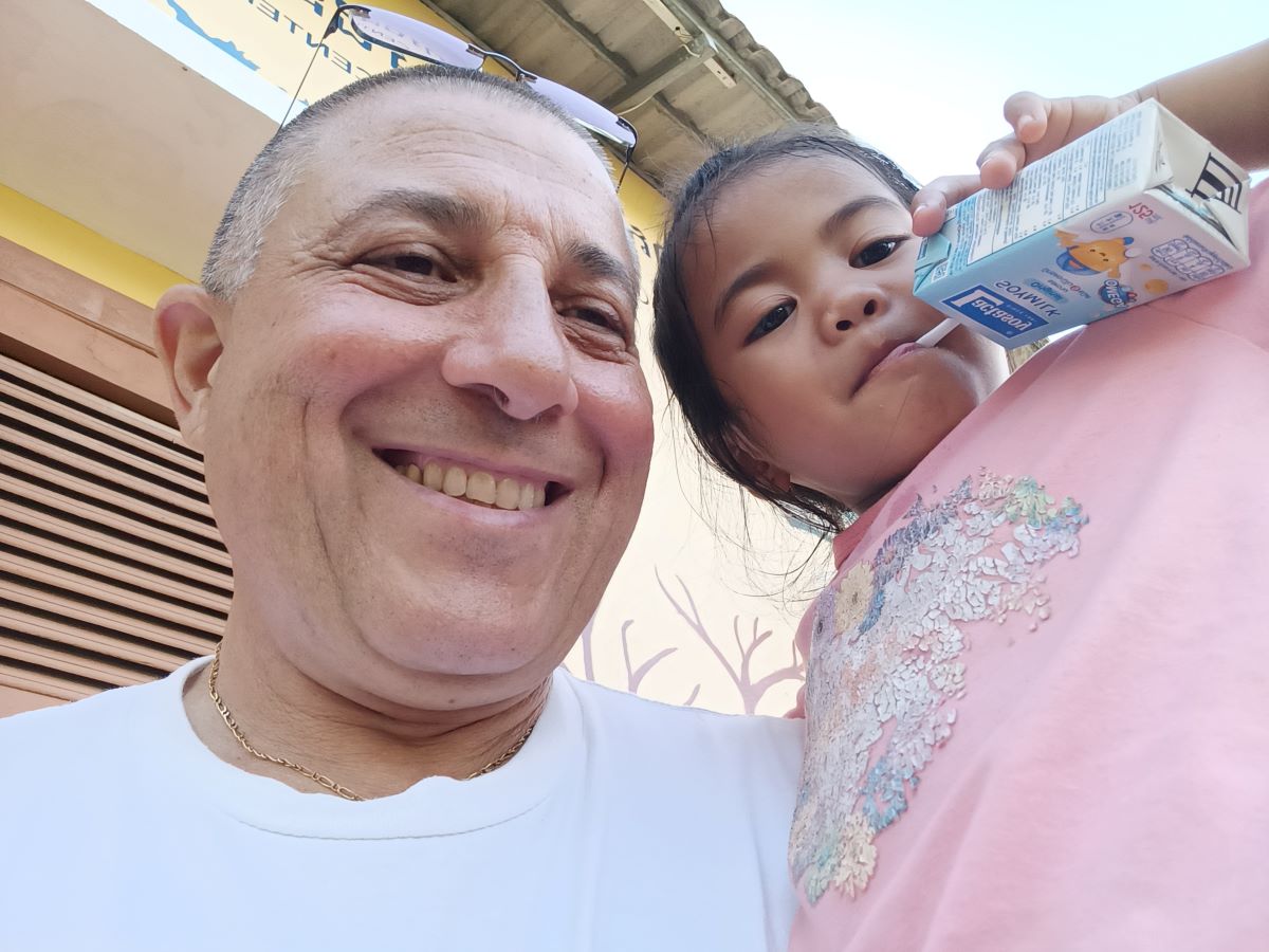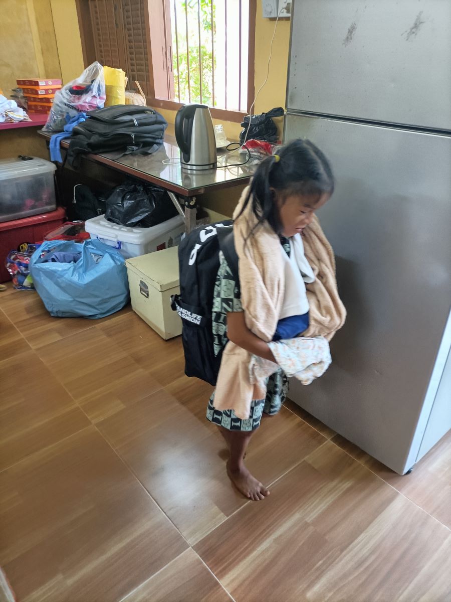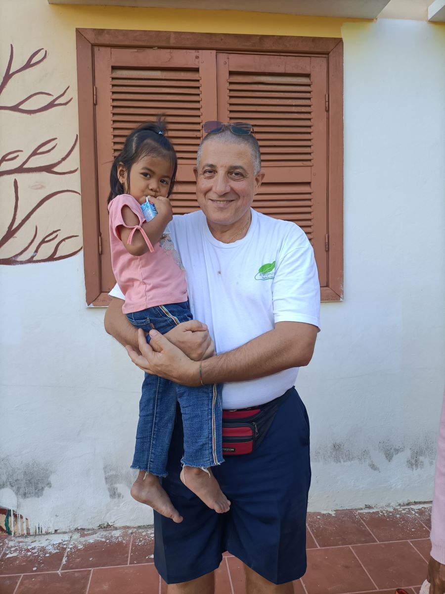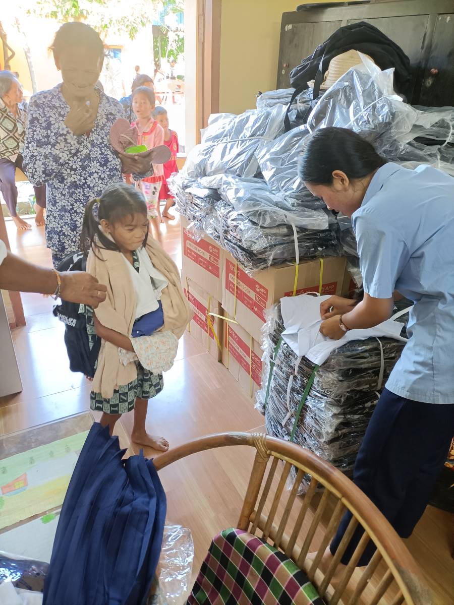 Le ragazze hanno ordine da Sokkea di cercare una divisa scolastica che le vada bene. La prima che estraggono dalla confezione è troppo grande. Meglio al secondo colpo. Sembra proprio della misura giusta. Theara e Malay fanno capire a me e Sokkea che è meglio che usciamo per non mettere in imbarazzo la bimba che deve cambiarsi e indossare la divisa. Quando esce è una studentessa modello ed è bellissima nella sua gonna blu e camicia bianca immacolata. Sembra molto fiera della sua nuova divisa. Mi accuccio vicino al lei per non sovrastarla con la mia stazza e la abbraccio mentre ci fanno le foto. Queste sono le cose che mi fanno letteralmente rinascere. Ci sono ancora cose buone al mondo, basta volerlo e basta davvero poco per raggiungerle. Anche Sokkea fatica a nascondere la soddisfazione e l’emozione per quella bimba così delicata e dolce nel suo essere “diversa”. Lo abbiamo visto anche con altri ragazzi, che la loro diversità è un motivo per voler loro ancora più bene e dedicare loro ancora maggiore attenzione.