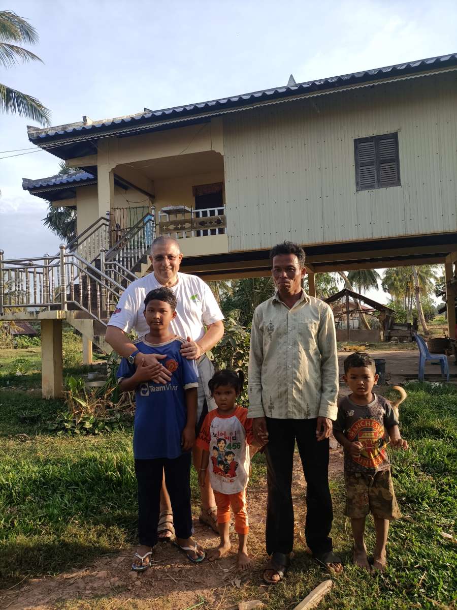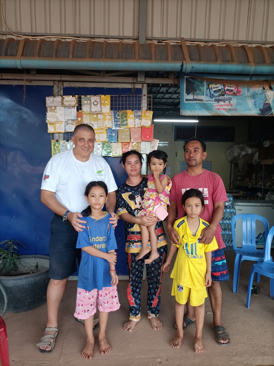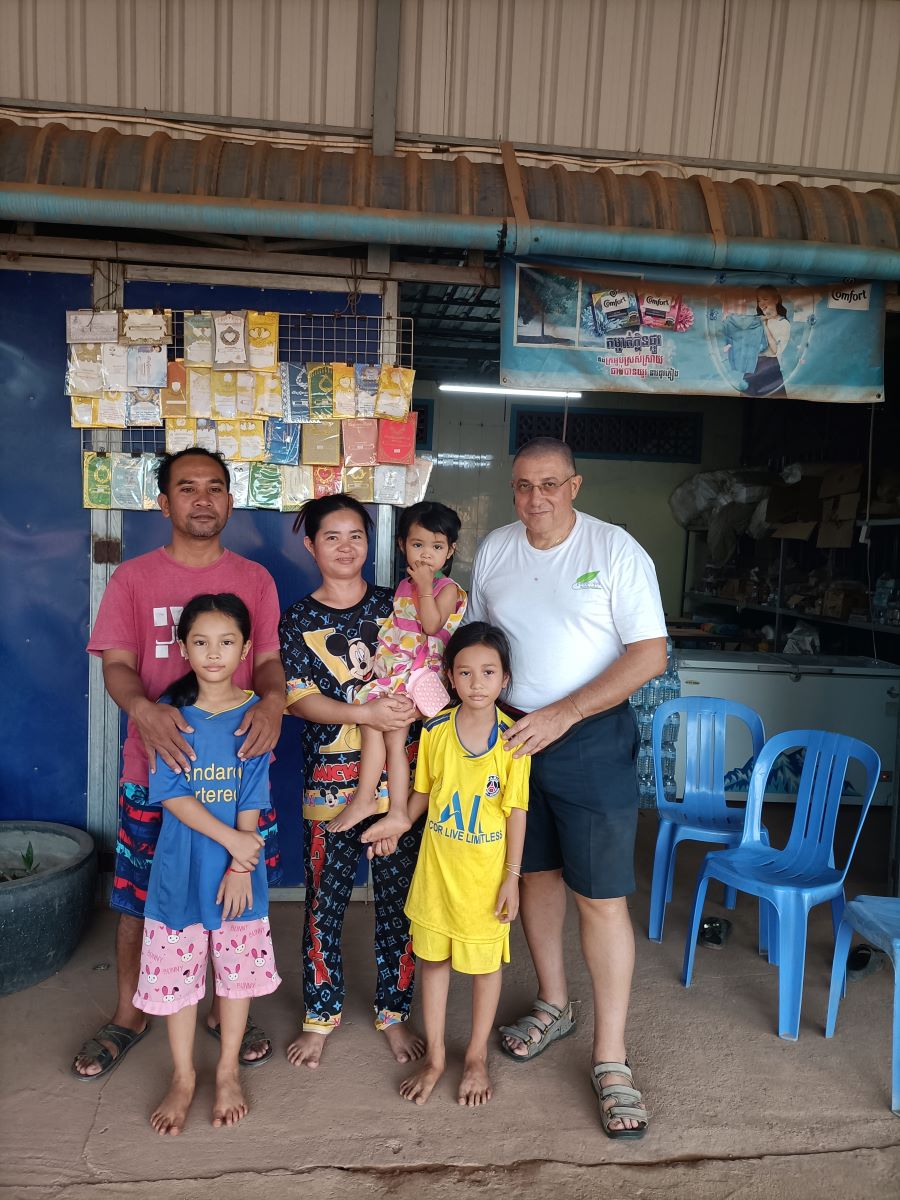 Sulla via del rientro ci fermiamo alla casa di Savat Enisona, la bimba per cui Silvio ha comprato regali commissionati dal suo sponsor. La casa è un mix di abitazione e di un negozio/emporio che si affaccia sulla statale e proprio all’angolo della strada che porta al lato del villaggio che si affaccia sul canale, da cui proveniamo di ritorno dalla casa di Tola. Enisona ha 9 anni e frequenta la quinta classe della scuola primaria. Ha due sorelle più piccole, Amarà di 8 anni e Rousha di 3 anni. Foto di rito con tutta la famiglia e poi via al Centro a recuperare il mio zaino con il computer e tuto il resto. Sono già quasi le 17.20 e la luce tra poco se ne andrà.
