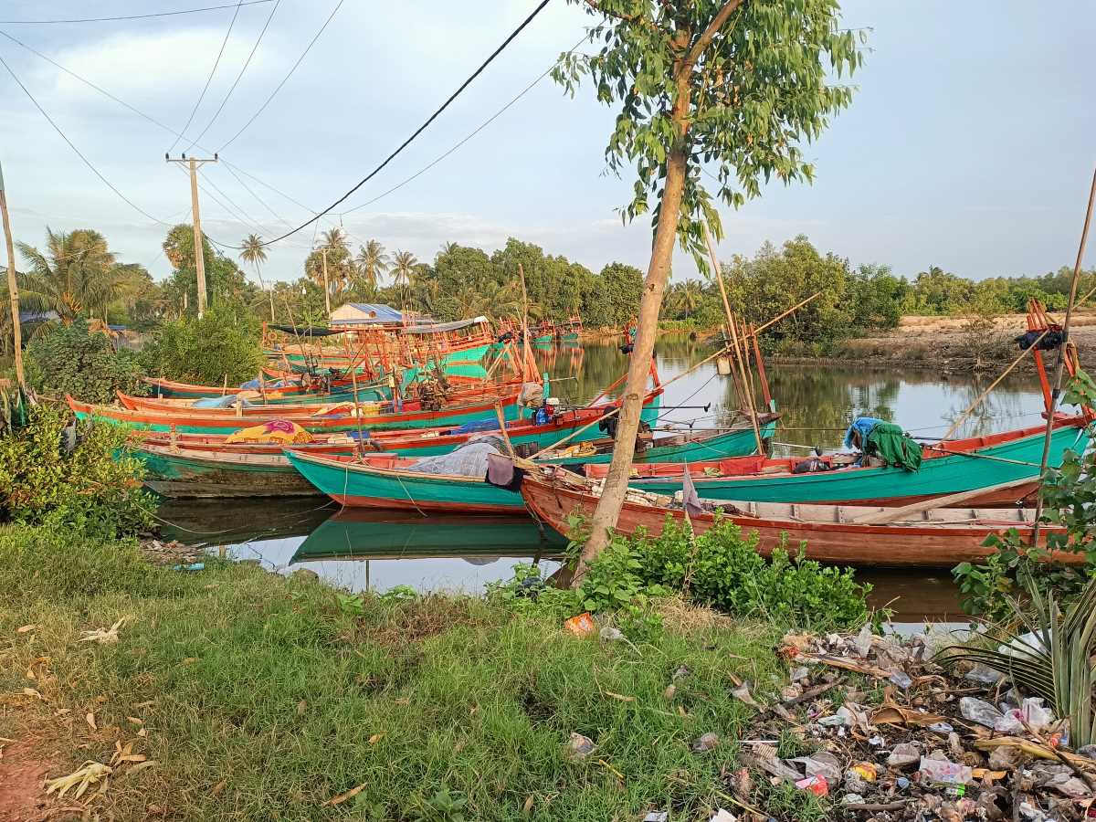 La seconda tappa la facciamo alla casa di Sean Tola, inserito ormai da diversi anni nel programma di sostegno. Passiamo accanto al canale che scende verso il mare a Kep, dove sono ormeggiate diverse barche da pesca dai tipici colori rosso e verde. La strada di accesso è sempre un viottolo tortuoso e un paio di volte rischio di ribaltarmi nella risaia, come tutte le altre volte che siamo andati da Tola. Certe cose sono dure a cambiare, evidentemente. Il Tola bimbo che mi ricordavo ha lasciato il posto a un ragazzo che avrei faticato a riconoscere se lo avessi incontrato in giro per il villaggio. Ormai ha 15 anni e frequenta la classe 10 in high school.
