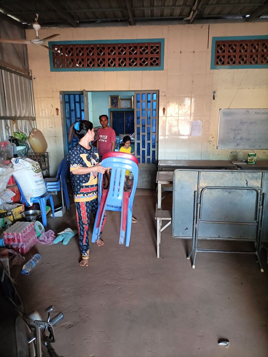 Alle 14.30 puntuali siamo tutti al Centro, già affollato di genitori con i loro bambini. In molti casi a questi incontri vengono i nonni. È il caso ad esempio della nostra adorata Sievmean, accompagnata qui dalla nonna dopo l’uscita di questa mattina. Gli incontri sono organizzati per fare il punto delle attività con i genitori e al tempo stesso sensibilizzarli sull’importanza di mantenere i bambini a scuola. Gli incontri servono anche per verificare l’impegno dei genitori nel seguire i figli e le loro attività, e per verificare che il fatto che li mandano al nostro Centro non sia un semplice “liberarsi o alleggerirsi della loro presenza”. Sokkea mi dice infatti che, se un genitore o chi è responsabile per il bambino non si presenta la prima volta viene mandata una comunicazione scritta tramite il bimbo/bimba. Alla seconda assenza si provvede ad un contatto telefonico o diretto di persona. Alla terza assenza il bambino/bambina viene purtroppo tolto dal programma. E questo va di pari passo con il processo di verifica delle condizioni, anche con le home visits che tanto ci stanno a cuore, per capire chi ha effettivamente più bisogno del supporto del nostro Centro o del Sostegno a Distanza.