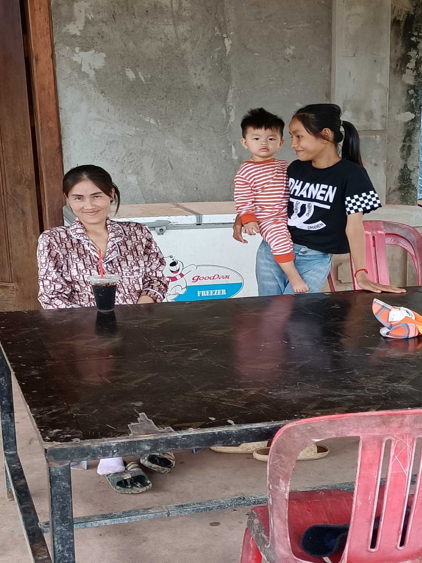 La mamma lavora in una fabbrica di scarpe a Kampong Trach, sulla strada che va verso Phnom Penh. Il padre lavora saltuariamente con un macchinario per il taglio degli alberi. Quindi è lui che accudisce i bambini (oltre a Mey Mey, 2 fratellini di 3 e 5 anni). E quando lo chiamano a fare dei lavori, spesso si porta appresso i due piccolini non avendo a chi affidarli. Immediatamente il pensiero va al nostro kindergarten del mattino che accoglie i bambini più piccoli per dare un supporto ai genitori che devono lavorare e non sanno a chi affidarli.