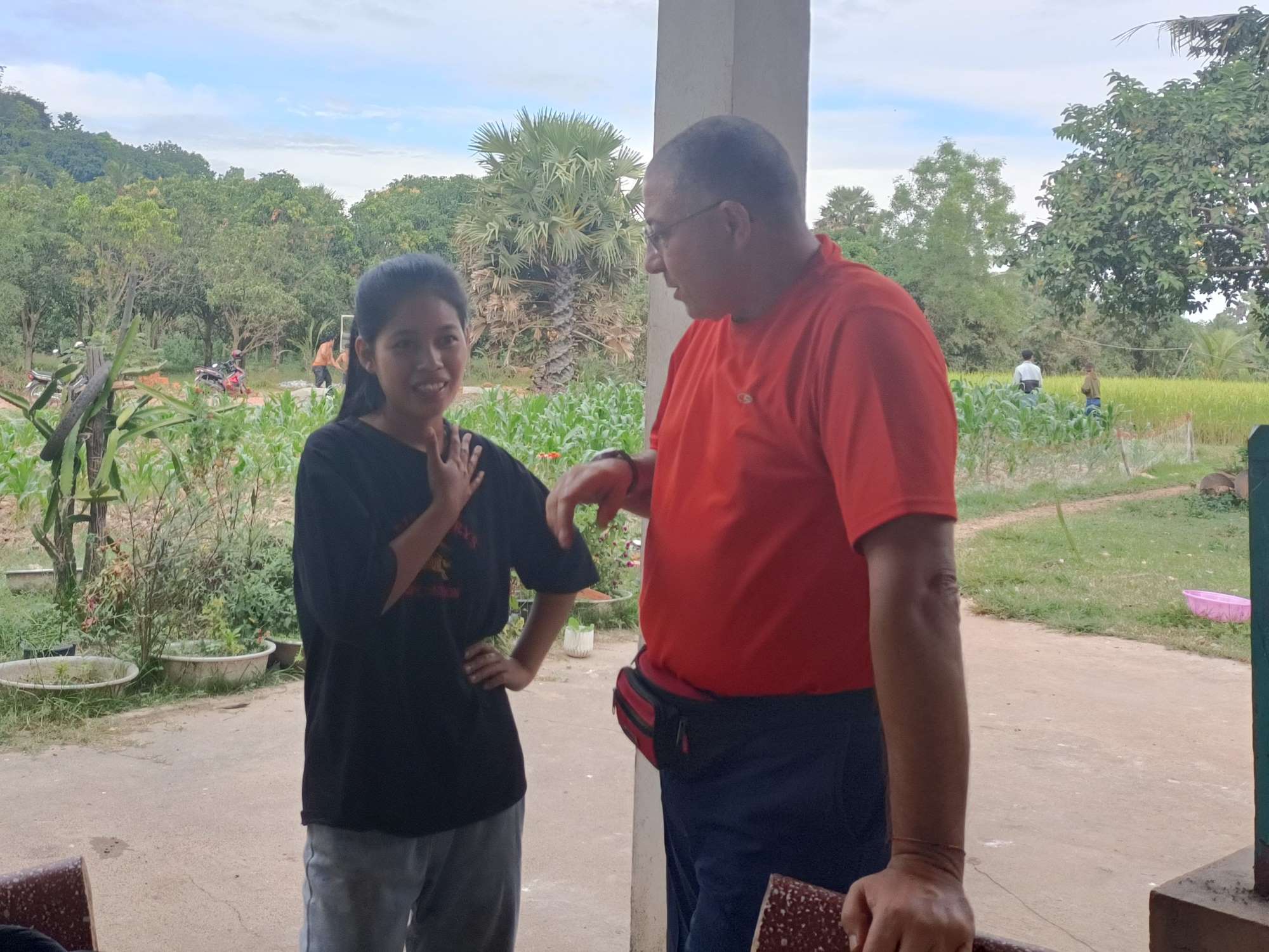 Mentre stiamo salutando per venire via arriva Mr. To, come lo abbiamo sempre chiamato. Il nostro primo responsabile del Centro. Lui era il volontario del Don Bosco che fu trovato da Sokkea di domenica sotto la pagoda di Phnom Sosear ad insegnare inglese al primo nucleo di circa 50 bambini. E fu quello il punto da cui partì il progetto che oggi è il nostro Centro. Adesso To è sposato ed ha un figlio di poco meno di un anno.