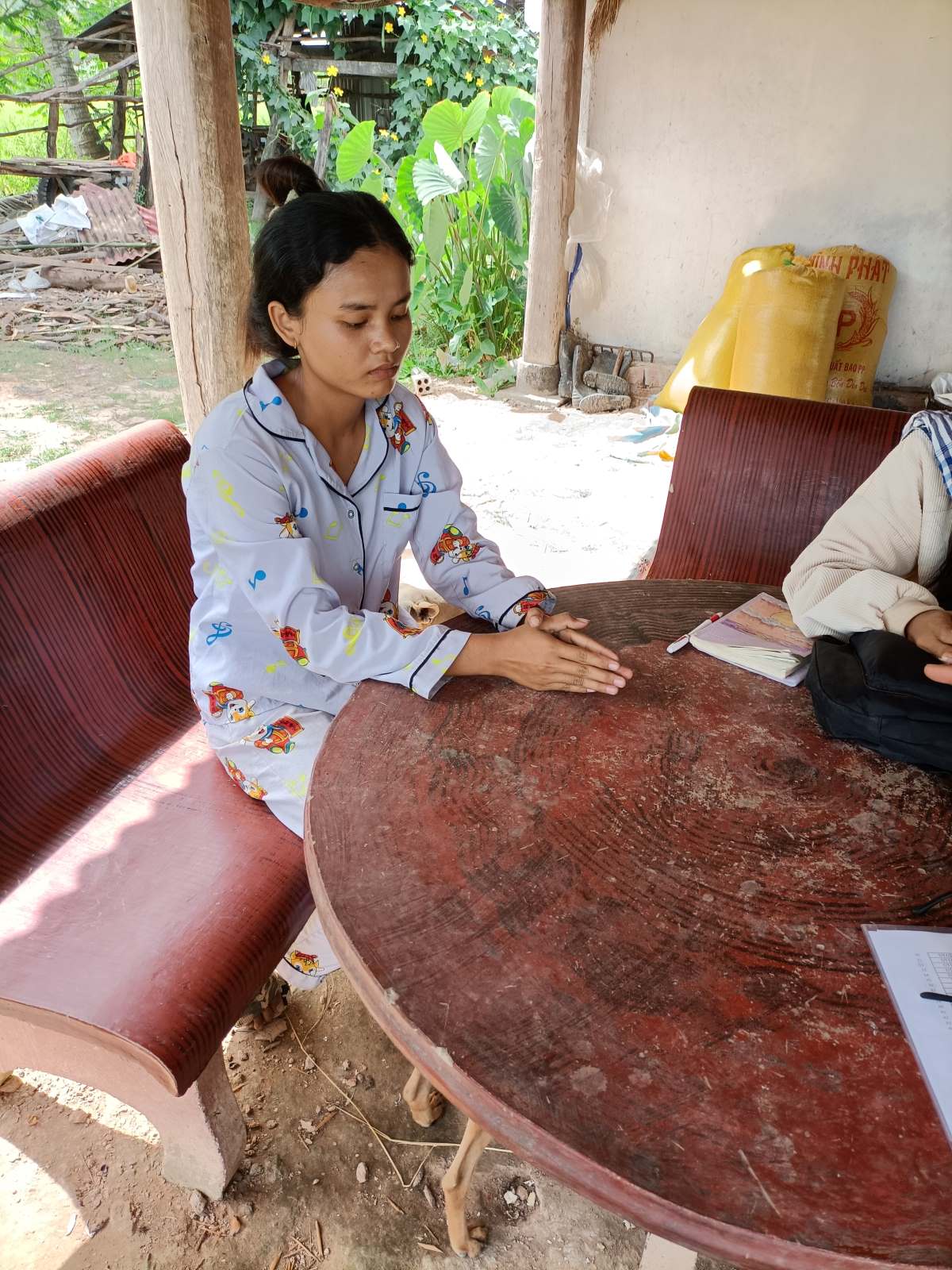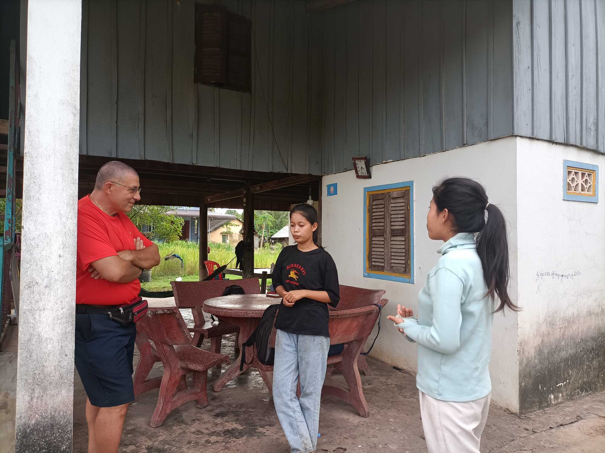 Arriva il papà e Sokkea inizia un dialogo fitto fitto, che in realtà è un monologo perché il papà con gli occhi tristi e lo sguardo basso ascolta solamente senza rispondere se non un vago “si” ai suggerimenti di Sokkea. Che gli sta dicendo che deve andare dal capo del villaggio per farsi fare il certificato di nascita. Che deve andare a iscrivere la bambina a scuola e lo deve fare in fretta perché il 1 dicembre iniziamo le lezioni. Se il direttore della scuola dovesse sollevare problemi interverrà Sokkea per spiegare la situazione e dare una mano a convincere all’accettazione dell’iscrizione.