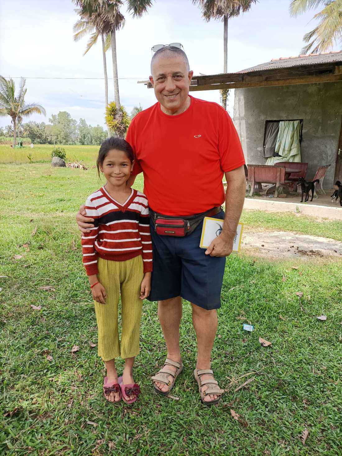 Facciamo le foto anche con Mouyhour e la sua famigliola e salutiamo tutti. Ormai si è fatta ora di pranzo. Sono passate le 13.30.