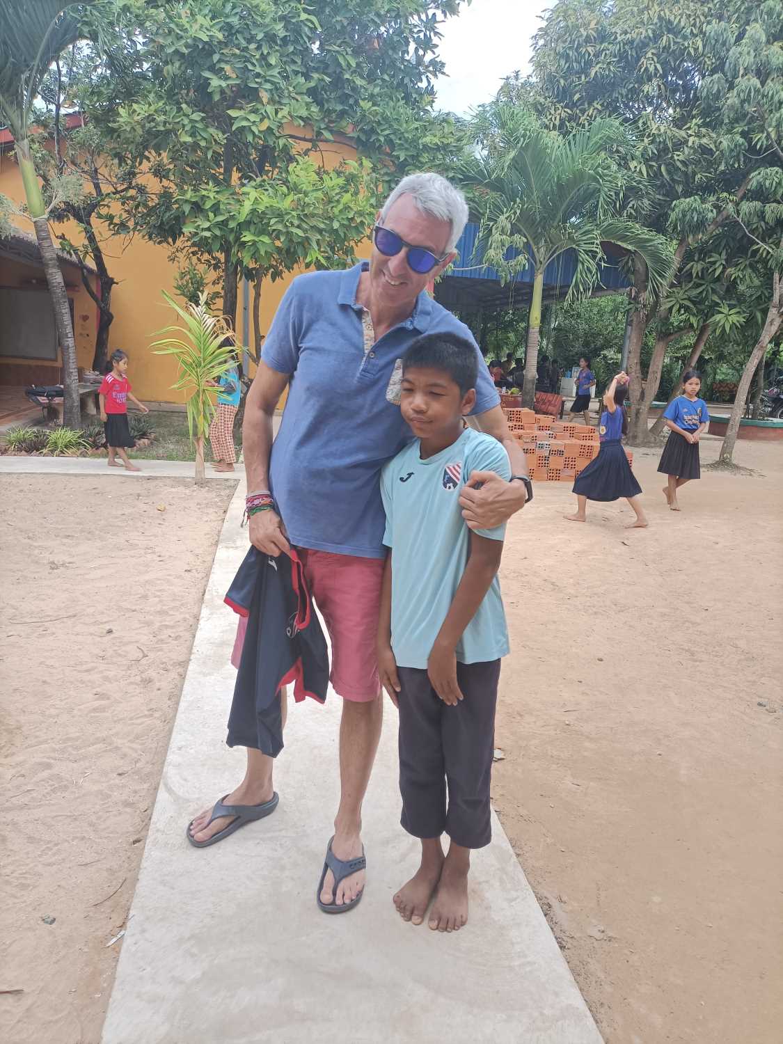 Qualche bis di foto con Nika, Khemarà e sua sorella Khanha, con Socheata, la sorella di Kunthea, che non mi molla un attimo (è tutt’altro che la bimba timidissima che ricordavo dall’anno scorso, forse perché adesso mi conosce meglio). E infine incontro il mio nuovo bimbo del sostegno a distanza Donghey. Un morettino dagli occhi vispi. Simpaticissimo e che parla anche un discreto inglese. Viene lui a farsi riconoscere, vestito in una tuta simil militare. Sono davvero felice di incontrarlo. E anche lui ha un sorriso e uno sguardo che sono uno spettacolo.