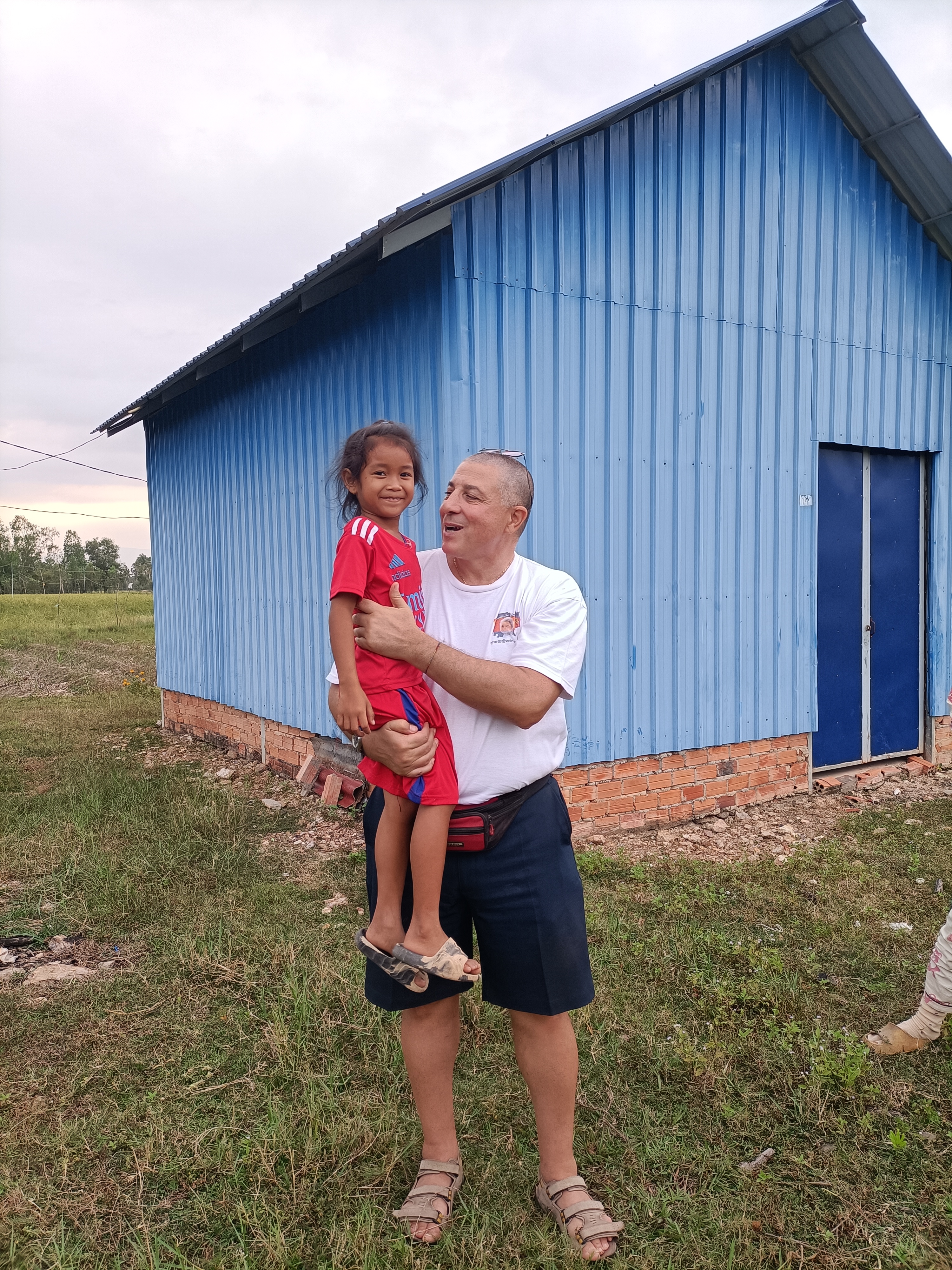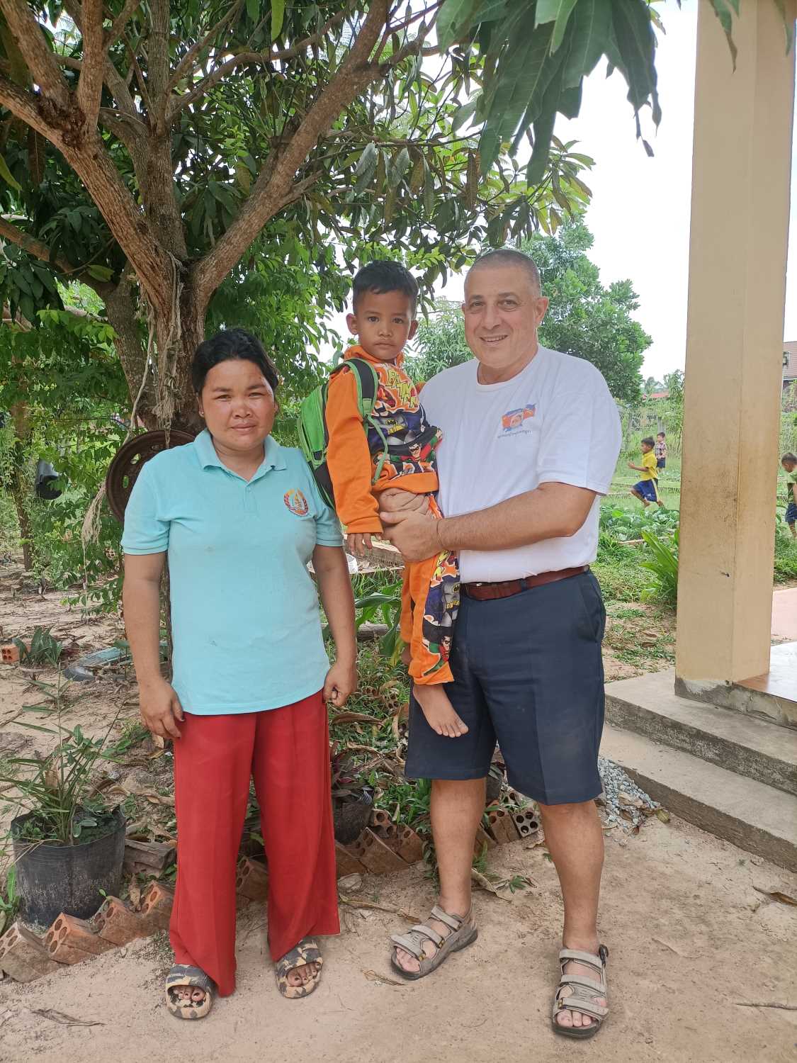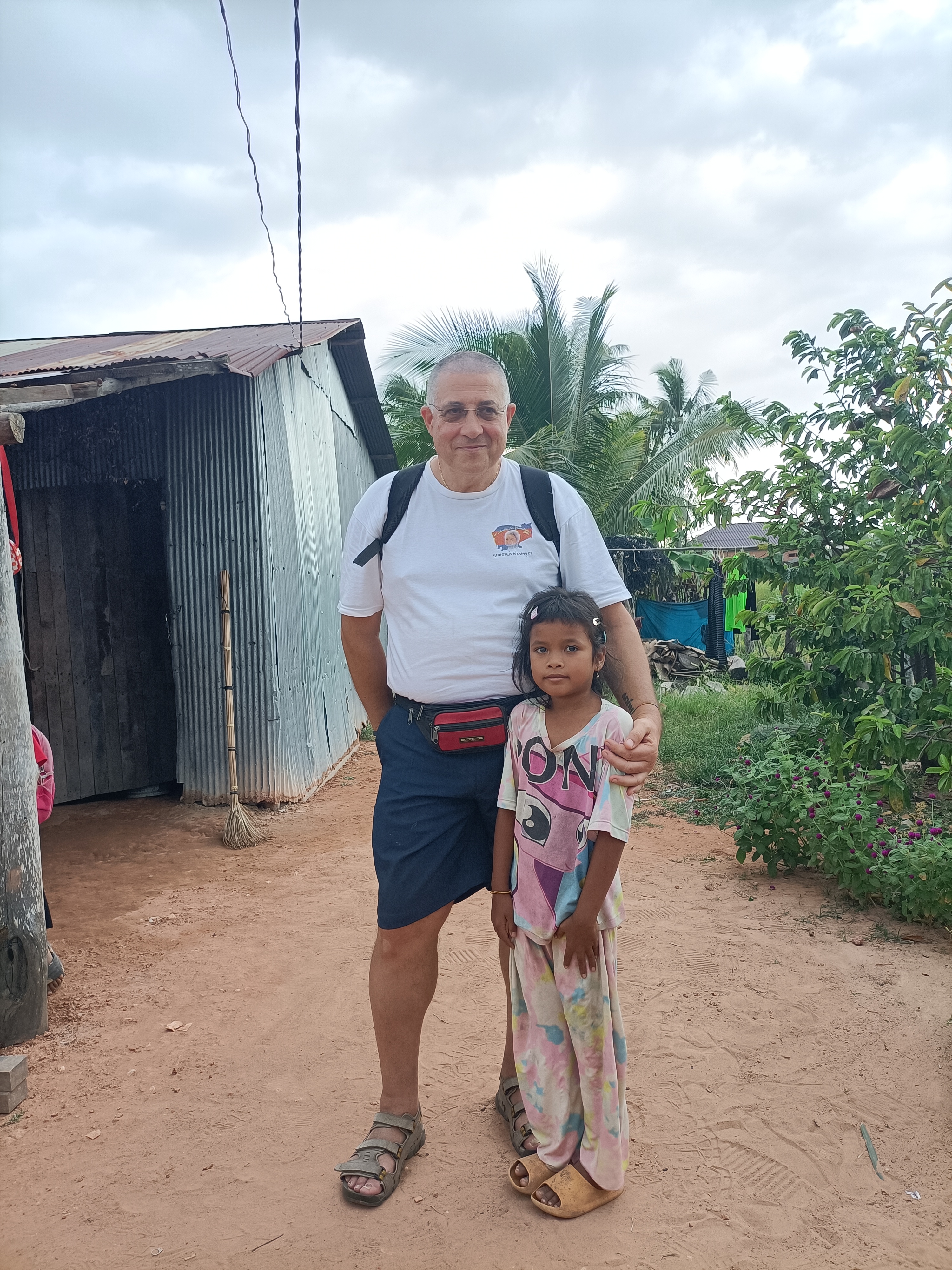Salutiamo a mani giunte con profondo rispetto e andiamo verso l’ultima home visit della giornata. Dalin, 6 anni, anche lei entrata in sostegno a distanza in sostituzione di una delle nostre ragazze andate all’università. Vive con la mamma, giovanissima di 34 anni, che ha divorziato dal marito. Non ha fratelli. La mamma lavora saltuariamente nella pulitura del pesce che viene pescato a Kep e poi portato ai mercati della zona. Anche la loro casa è molto essenziale. In muratura con tetto in lamiera, abbastanza nuova. Non hanno pozzo ma hanno la possibilità di attingere a quello della nonna materna a poca distanza. Mentre stiamo salutando, arriva una vicina con in braccio una bella bimba che mi guarda un po’ perplessa. Faccio per prenderla in braccio ma scoppia a piangere e non ne vuole sapere di staccarsi dalla mamma. Beh non si può sempre ispirare fiducia a tutti i bimbi, soprattutto per una della mia mole che qui sembra un gigante sia in altezza che soprattutto in larghezza. Eheheheheh. Meno male che riesco ancora a ridermi addosso, ma il bisogno di buttare giù chili sale di giorno in giorno man mano che mi confronto con la gente di qui, benché sia la undicesima volta che vengo in Cambogia.