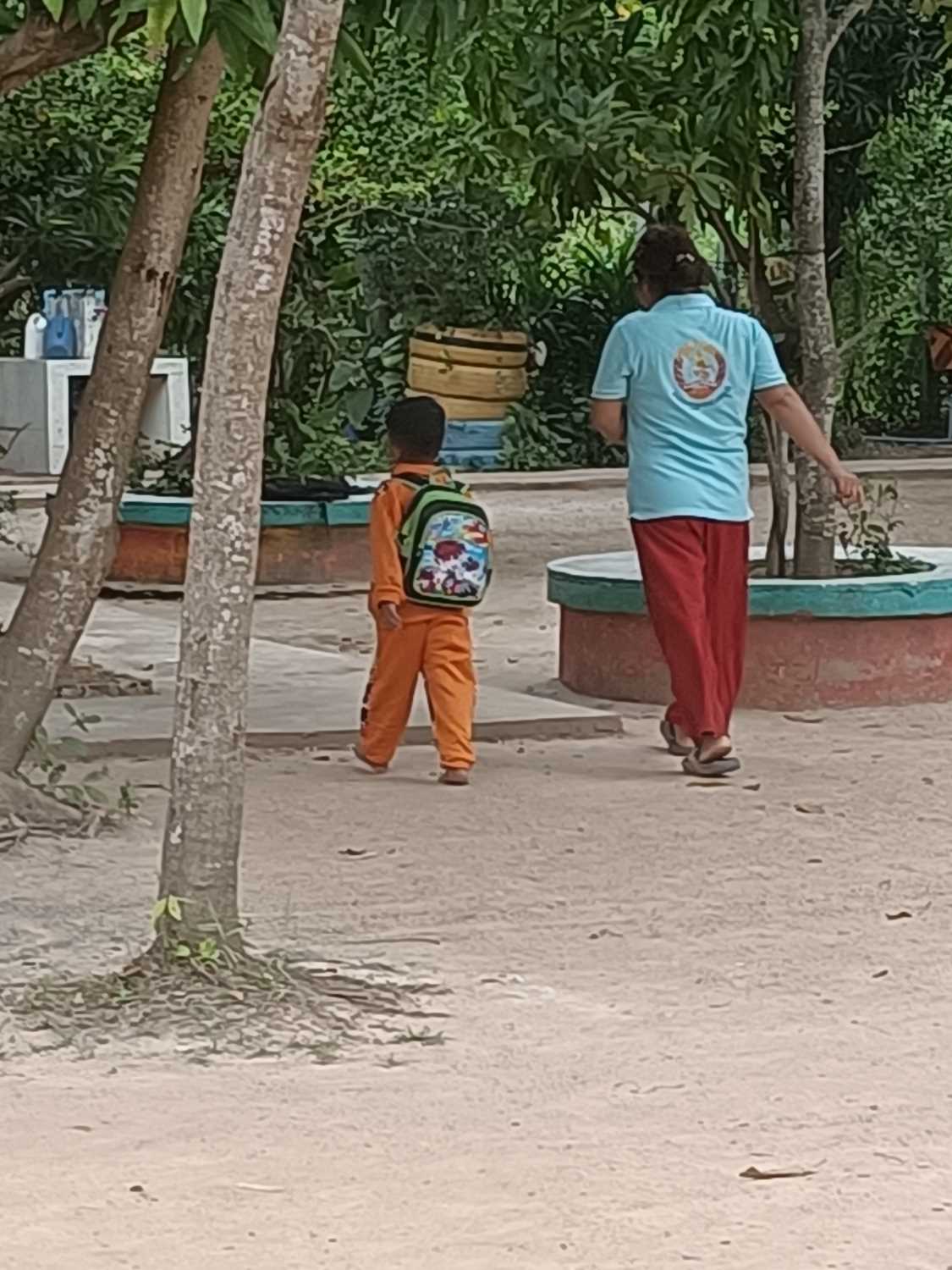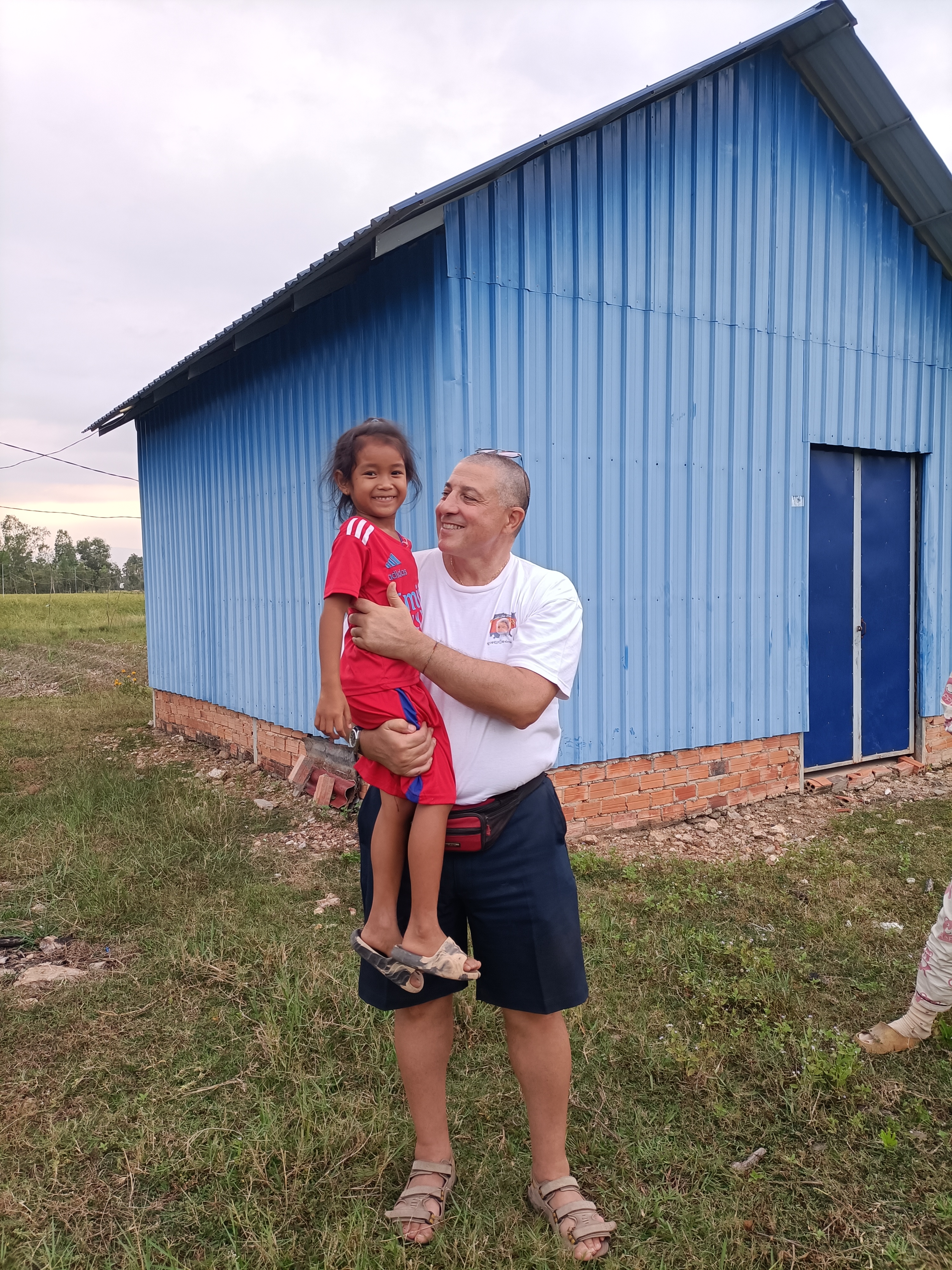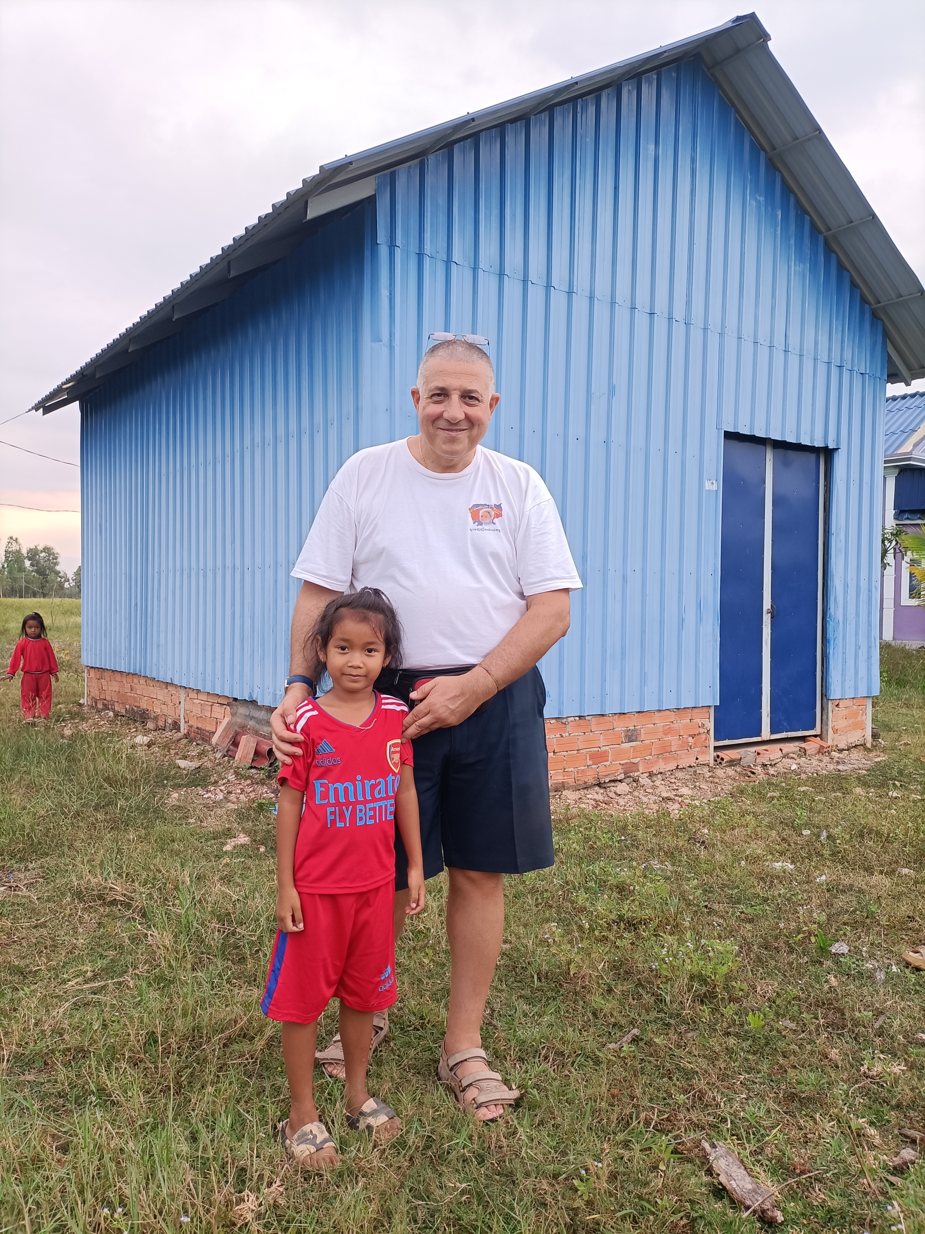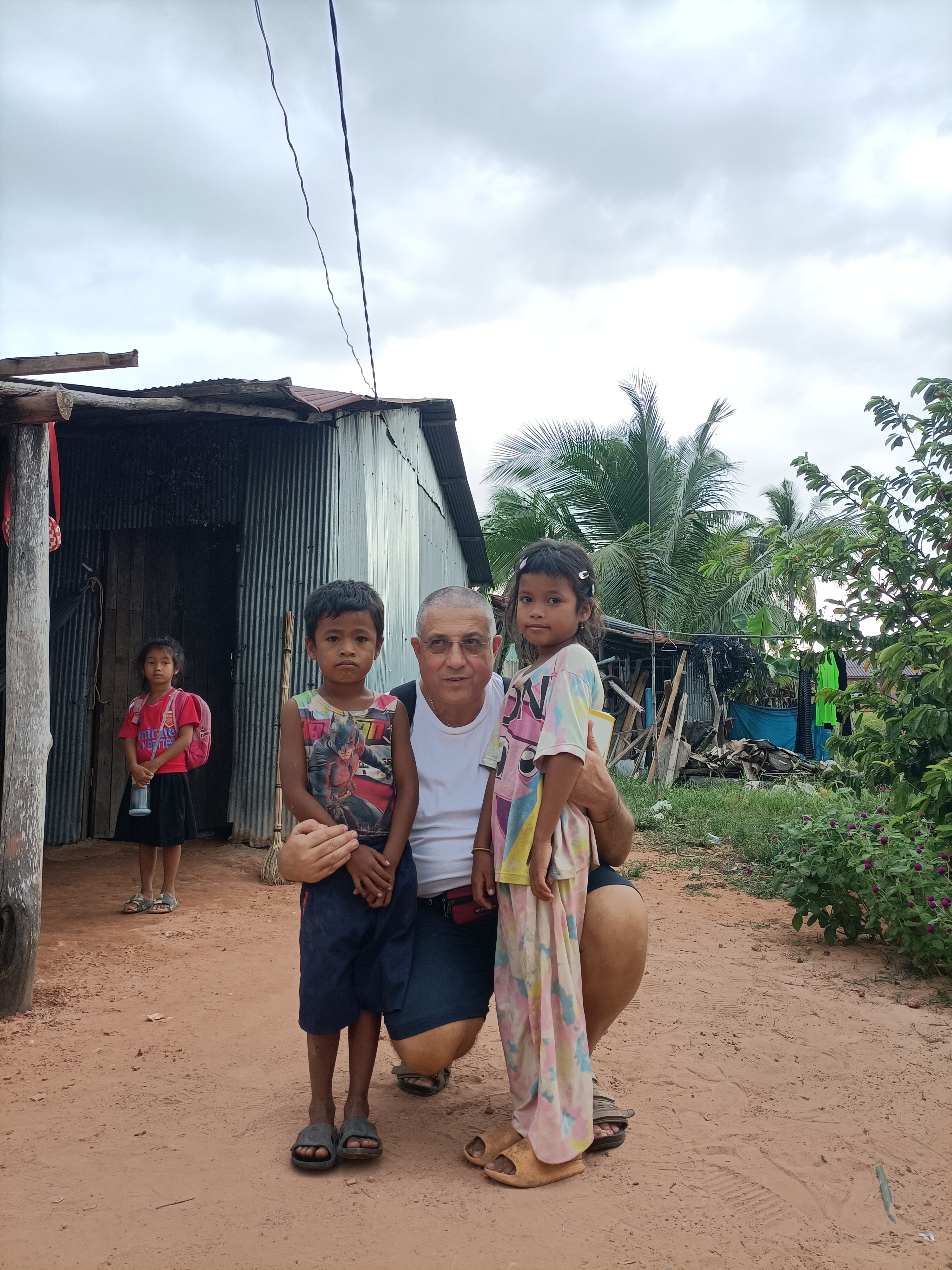 Salutiamo a mani giunte con profondo rispetto e andiamo verso l’ultima home visit della giornata. Dalin, 6 anni, anche lei entrata in sostegno a distanza in sostituzione di una delle nostre ragazze andate all’università. Vive con la mamma, giovanissima di 34 anni, che ha divorziato dal marito. Non ha fratelli. La mamma lavora saltuariamente nella pulitura del pesce che viene pescato a Kep e poi portato ai mercati della zona. Anche la loro casa è molto essenziale. In muratura con tetto in lamiera, abbastanza nuova. Non hanno pozzo ma hanno la possibilità di attingere a quello della nonna materna a poca distanza. Mentre stiamo salutando, arriva una vicina con in braccio una bella bimba che mi guarda un po’ perplessa. Faccio per prenderla in braccio ma scoppia a piangere e non ne vuole sapere di staccarsi dalla mamma. Beh non si può sempre ispirare fiducia a tutti i bimbi, soprattutto per una della mia mole che qui sembra un gigante sia in altezza che soprattutto in larghezza. Eheheheheh. Meno male che riesco ancora a ridermi addosso, ma il bisogno di buttare giù chili sale di giorno in giorno man mano che mi confronto con la gente di qui, benché sia la undicesima volta che vengo in Cambogia.