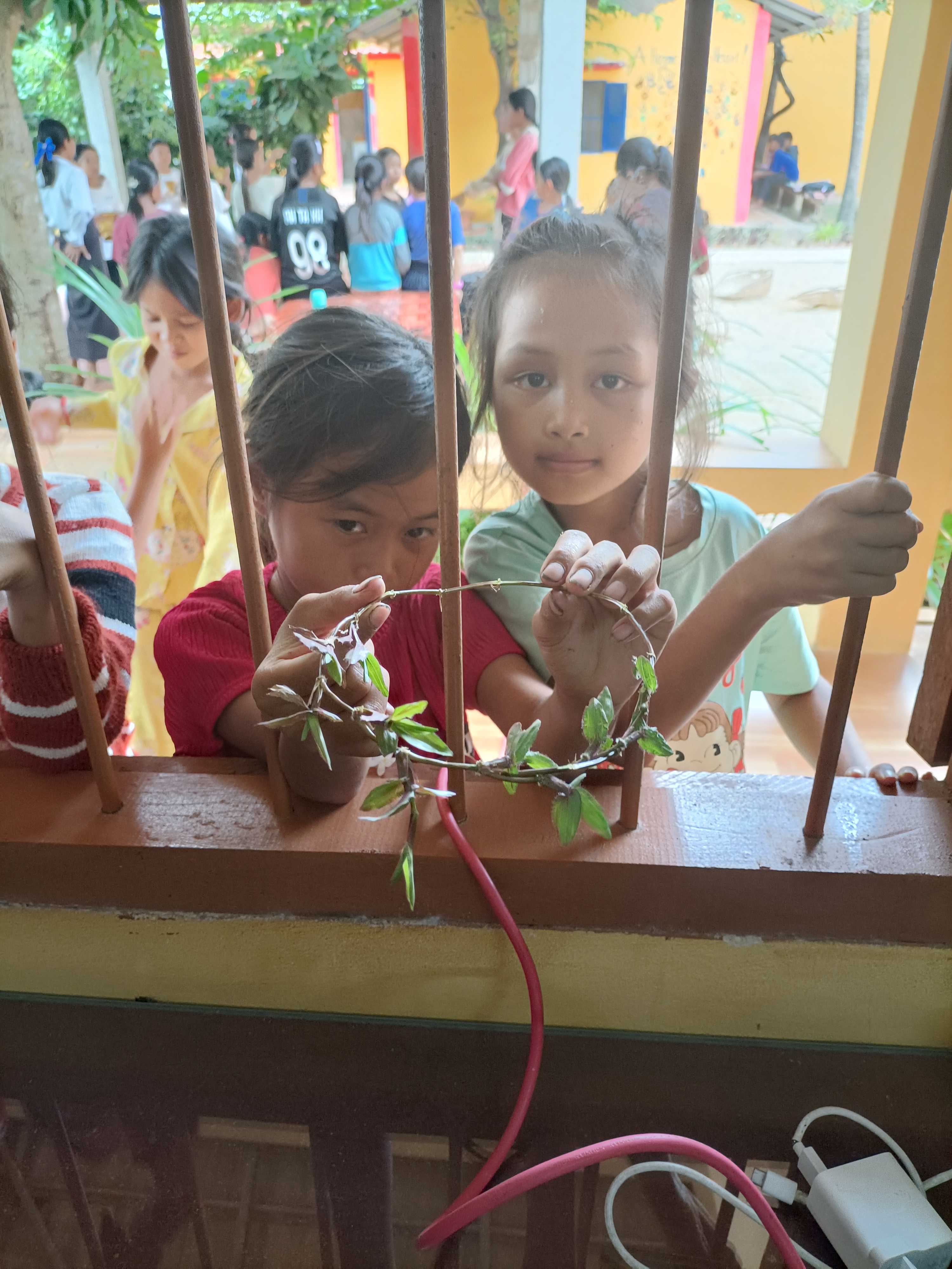 Mentre aspetto che mi portino a fare le home visits del pomeriggio lavoro un po’ al computer in ufficio con Channa e Sokkea. E’ tutto un via vai di bimbe che mi portano fiori, corone e braccialetti di fiori che mi donano sorridendo e insistendo perché io le indossi. Con la corona di fiori sulla testa faccio un po’ Vedere del Botticelli, soprattutto per la procacità delle mie forme, anche se la bellezza non è esattamente la stessa. Eh eh eh eh.