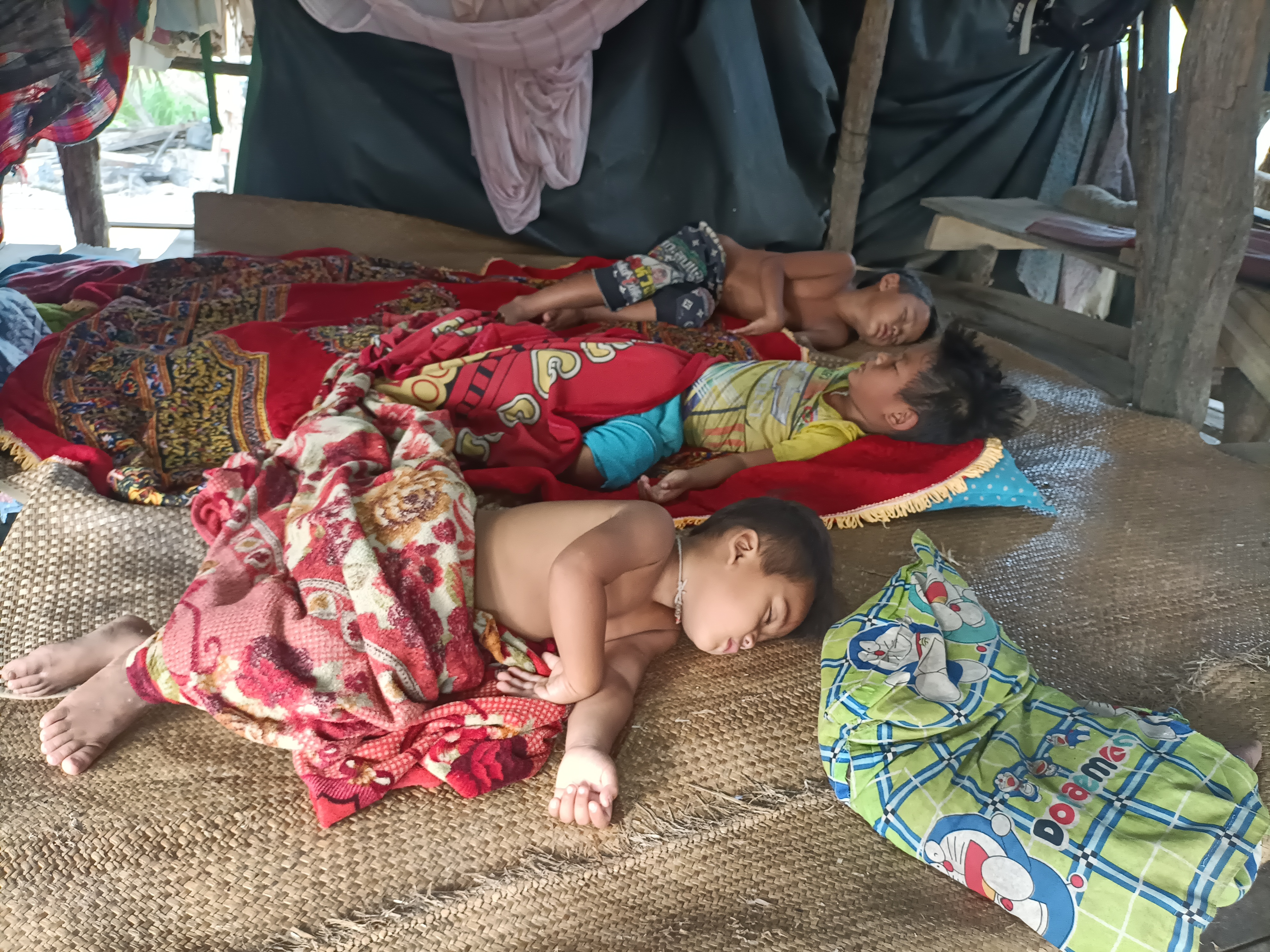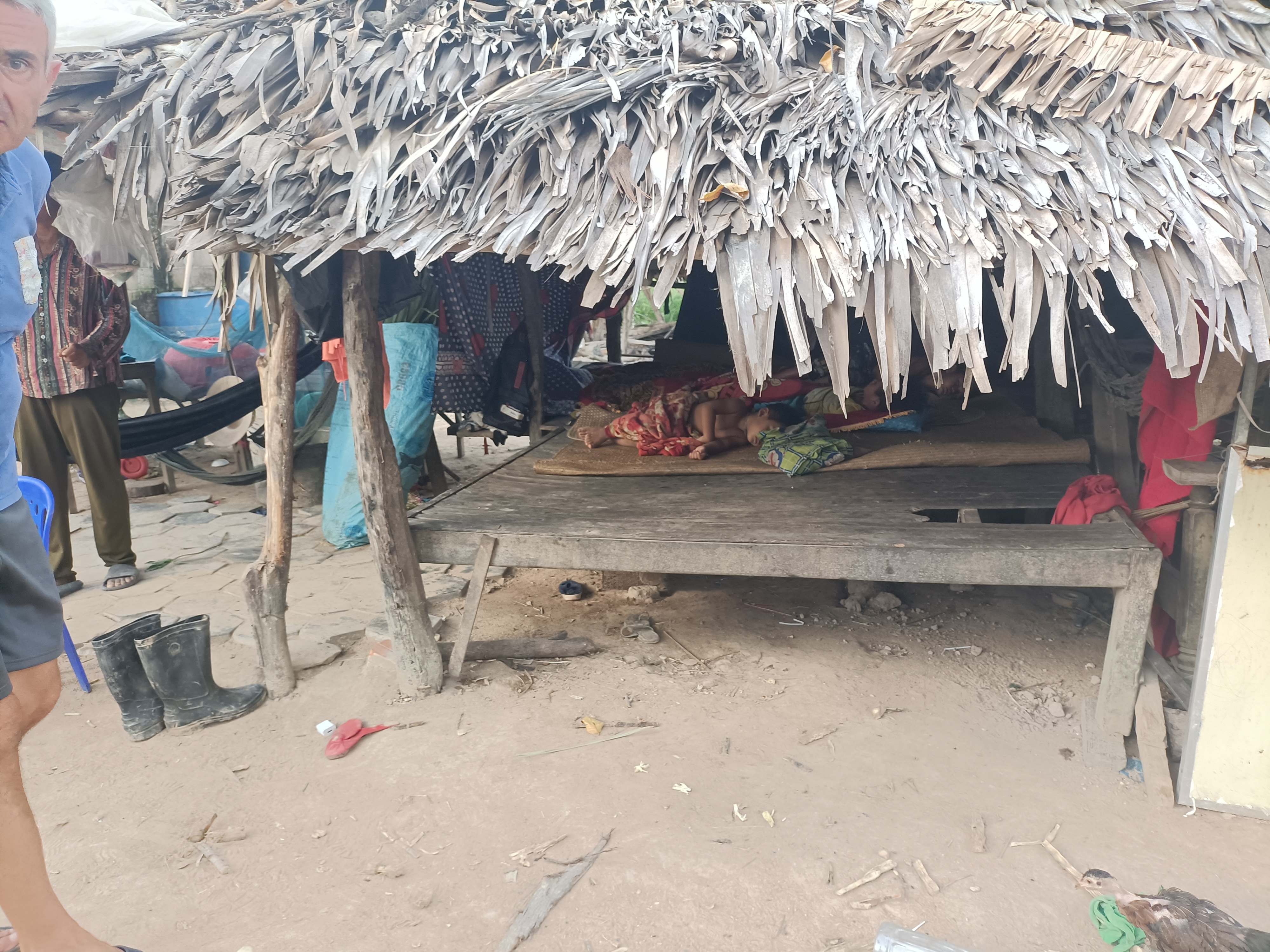 Per le home visits partiamo abbastanza tardi verso le 15.30. Andiamo a trovare Houngvira, che però sta beatamente dormendo con i suoi fratelli. La nonna fa per svegliarlo ma la blocchiamo. Facciamo solo qualche foto di lui che dorme e della casa. Anche lui è uno dei piccolini. Ha 5 anni.