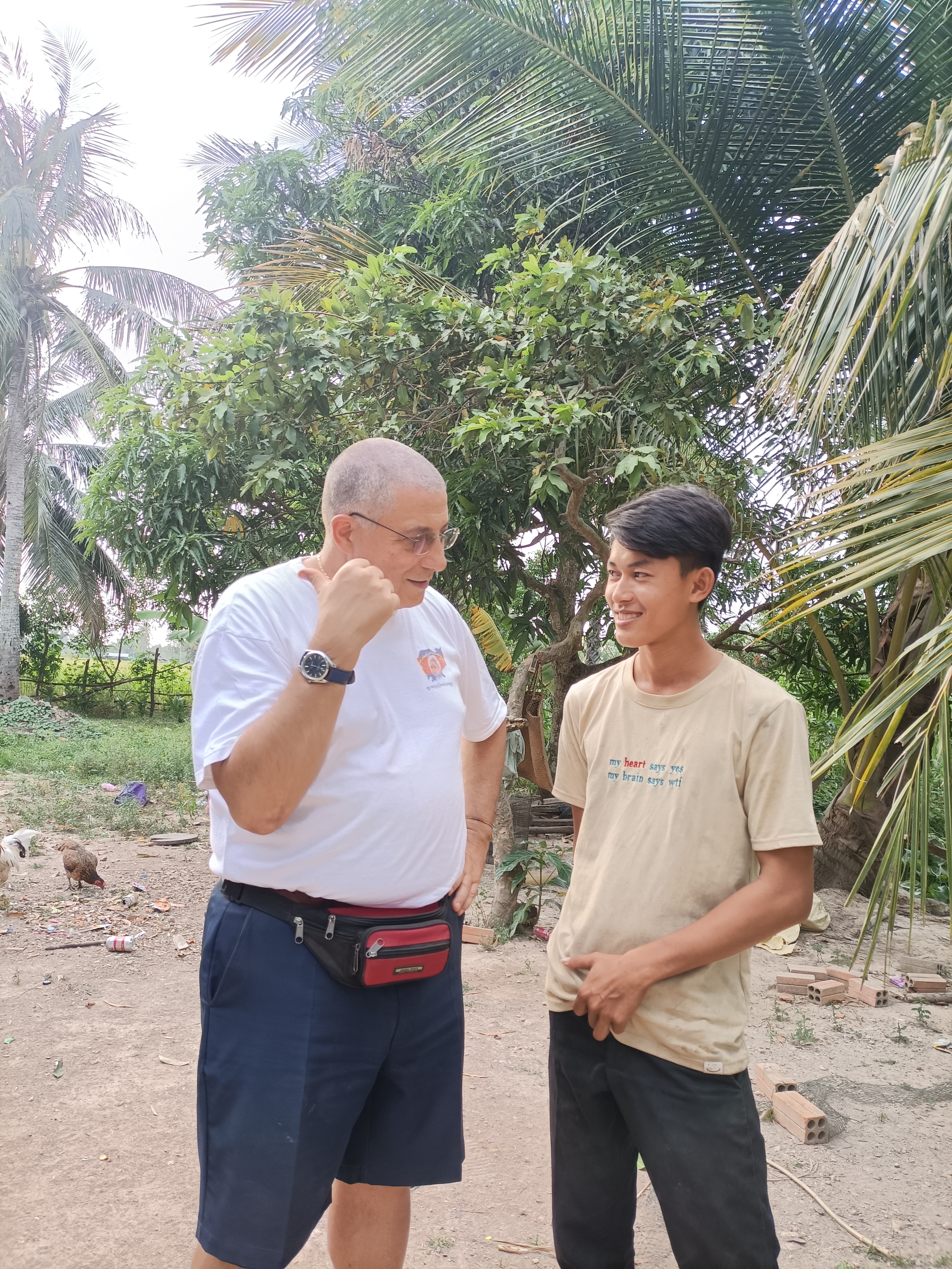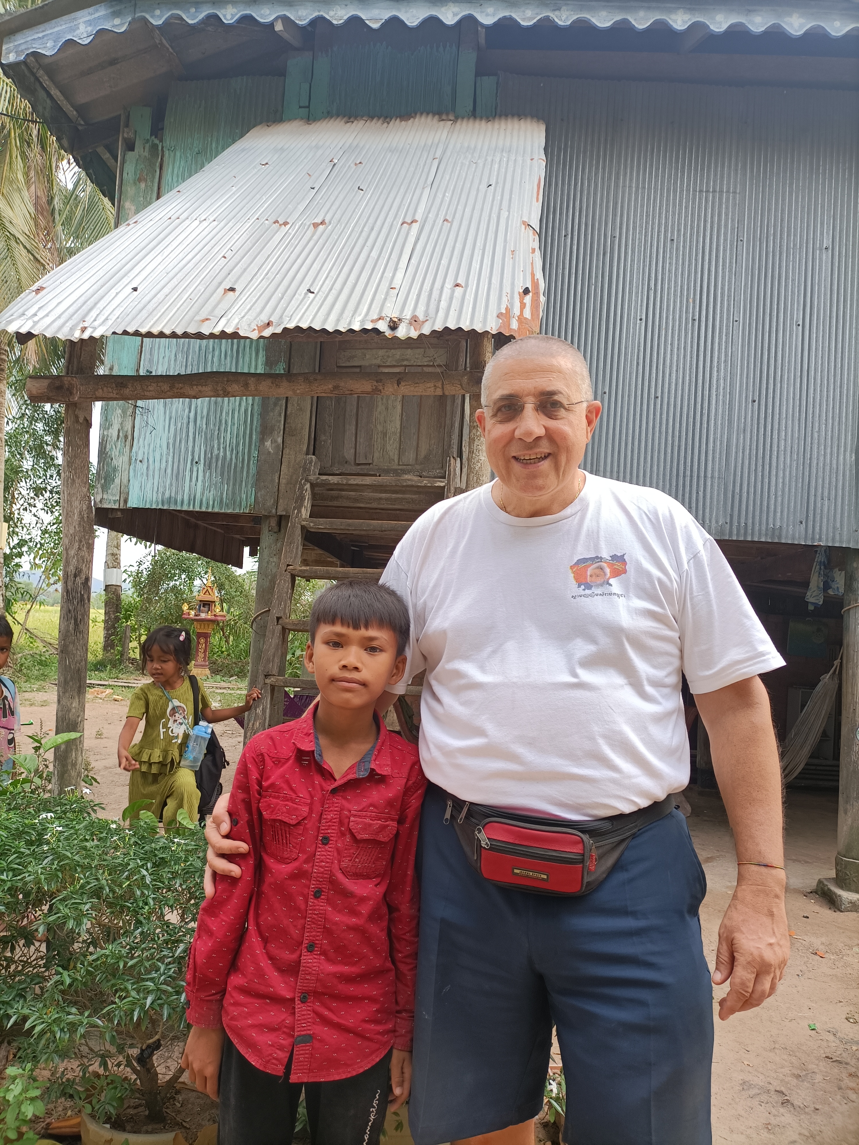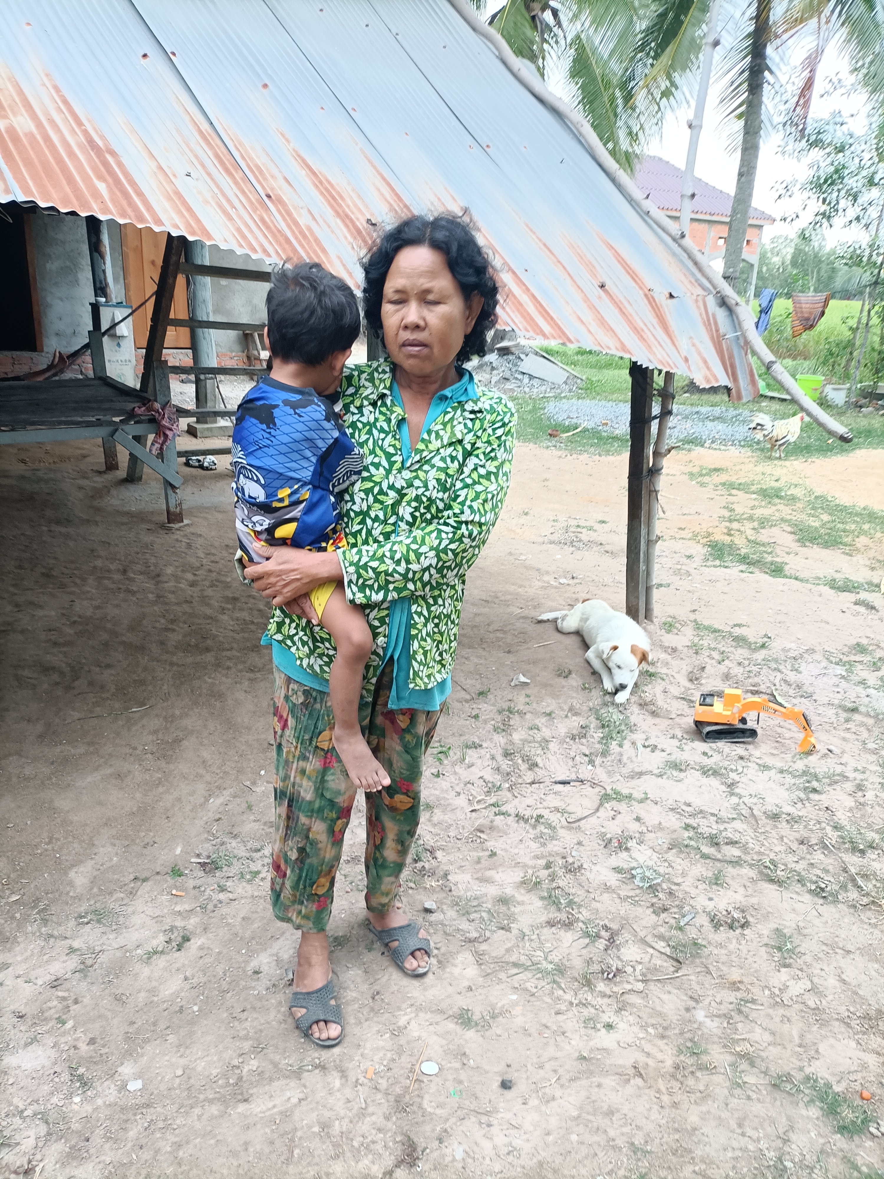 Proseguiamo a piedi sempre più in mezzo alle risaie per arrivare alla casa di Sievmean, anche lei inserita recentemente in sostegno a distanza in sostituzione di Malay che è andata all’università. I genitori non ci sono. Sono a Kep a lavorare. La mamma fa la cameriera in un resort e il papà fa il muratore. L’accudisce la nonna, che non so come faccia a gestirla vista l’iperattività di Sievmean, che come arriva a casa sparisce arrampicandosi su un albero. La nonna ha la mia età 62 anni, portati discretamente bene per una donna cambogiana. Nei miei giri in queste campagne ho conosciuto persone anche significativamente più giovani di me, che sembravano i miei genitori.
