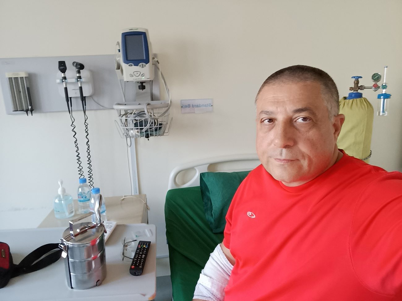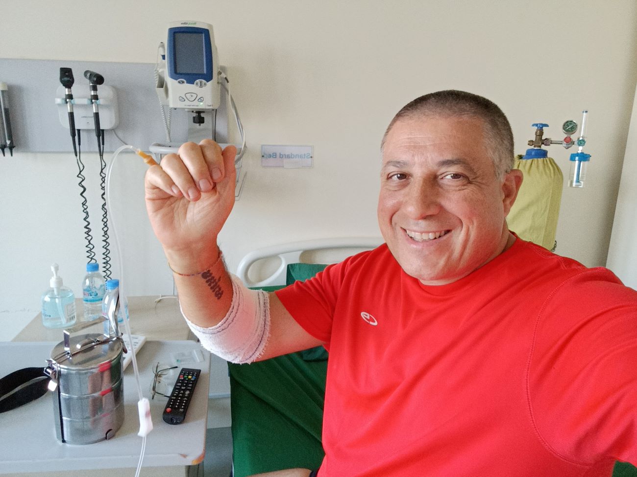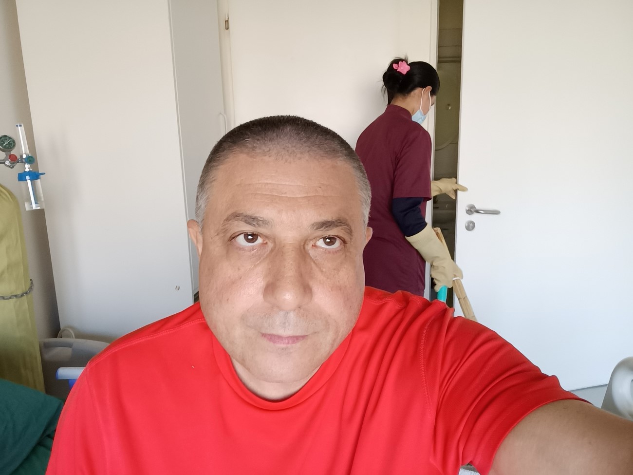 Mentre sto facendo una live su Facebook viene a trovarmi il dottore che mi aveva seguito in Pronto Soccorso la sera prima e mi conferma che non ci sono fratture alle costole e tantomeno alla gamba. Mi controlla se è ancora gonfia e sicuramente adesso lo è di meno rispetto a ieri sera. Mi dice che mi terranno in ospedale fino a sera per lasciare decorrere le 24 ore dell’osservazione. / As I’m doing a Facebook live, the doctor who had followed me to the ER the night before comes to see me and confirms that there are no fractures in my ribs, let alone my leg. He checks to see if it is still swollen and it is certainly less swollen now than it was last night. He tells me that they will keep me in the hospital until evening to let the 24 hours of observation run.