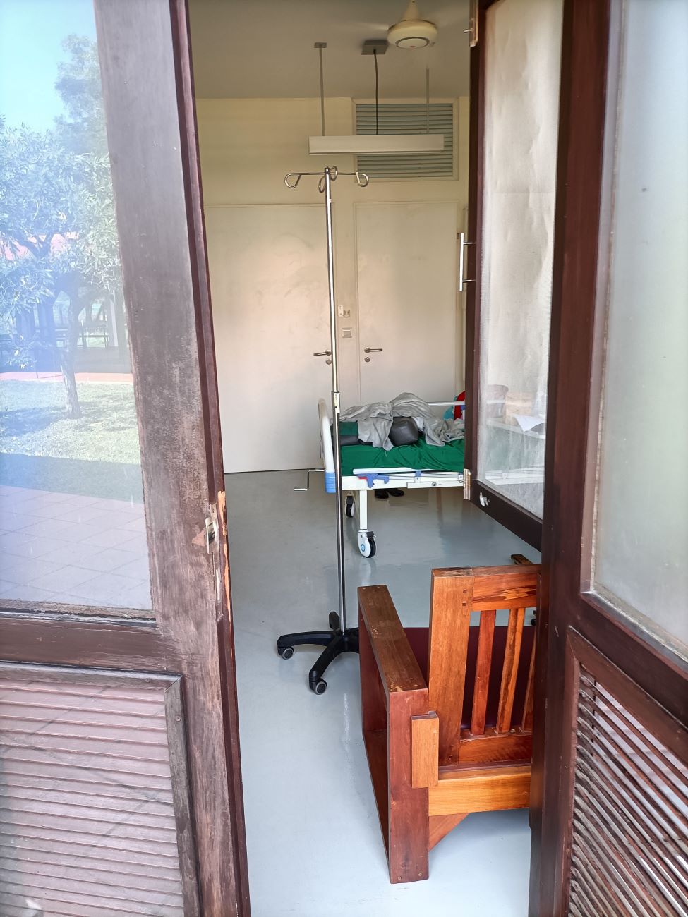 Mi sveglio la mattina non appena fa chiaro. Ogni tanto arriva qualche infermiera a farmi qualche misurazione; pressione, saturazione, febbre (e non fate gli spiritosi, già vedo i sorrisi maliziosi, il termometro me lo ha messo sotto l’ascella e non dove non splende il sole). Passa anche una signora delle pulizie che mi saluta in Khmer senza alzare lo sguardo (non per maleducazione, ma per timidezza). / I wake up in the morning as soon as it’s clear. Every now and then a few nurses come by to take a few measurements; blood pressure, saturation, fever (and don’t be funny, I can already see the mischievous smiles, the thermometer put under my armpit and not where the sun doesn’t shine). A cleaning lady also passes by and greets me in Khmer without looking up (not out of rudeness, but out of shyness).