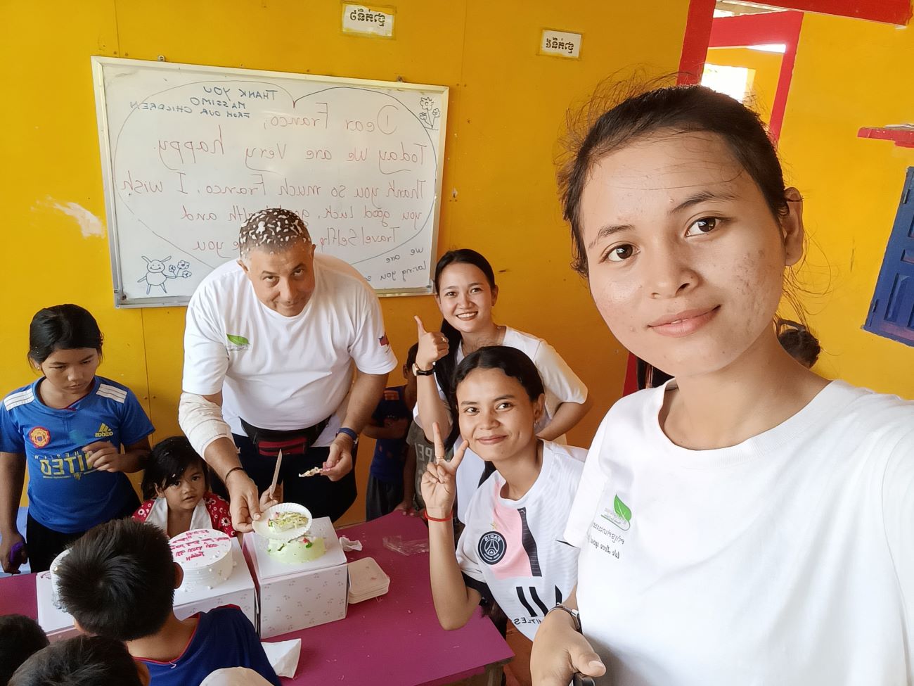 Saluto con un abbraccio Channa, Theara, Teacher Thim, Teacher Houn e Teacher Changhour. / I greet Channa, Theara, Teacher Thim, Teacher Houn and Teacher Changhour with a hug.