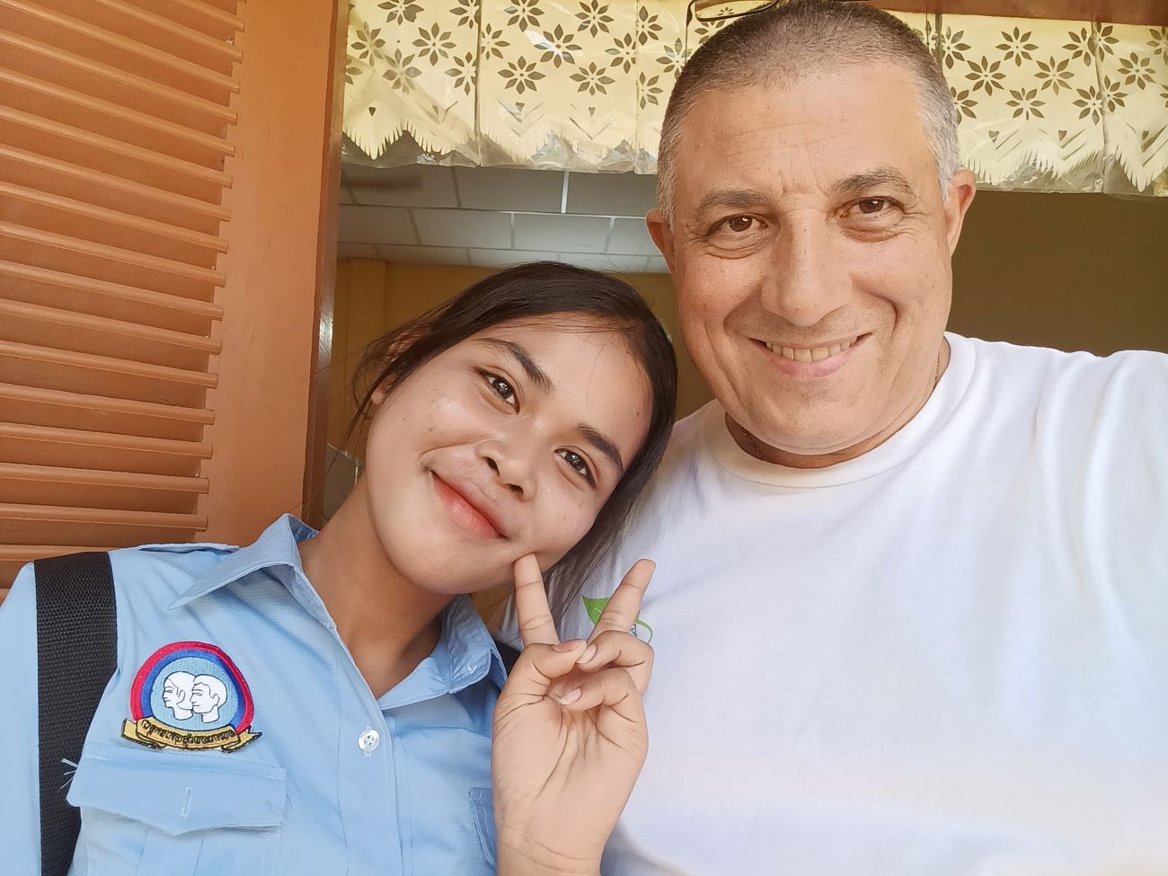 Studia in una delle più prestigiose scuole/università di Phnom Penh e parla un inglese perfetto. Ha vinto una borsa di studio per andare a studiare per 6 mesi in Thailandia, ma per adesso ha messo in stand by il progetto perché è emersa la possibilità per lei e la sua famiglia di trasferirsi negli Stati Uniti, molto probabilmente in California. Bellissime notizie davvero. Le dico quanto sono orgoglioso di lei. Le racconto della mia esperienza di exchange student negli USA nel 1978/79. Mi si riempie davvero il cuore di gioia per questa ragazza, che non ha mai perso occasione in tutti gli anni da quando la conosco, di dimostrarsi una persona veramente intelligente e dotata. / She is studying at one of the most prestigious schools/universities in Phnom Penh and speaks perfect English. She has won a scholarship to go to study for 6 months in Thailand, but has put the project on hold for now because the possibility has emerged for her and her family to move to the United States, most likely to California. Wonderful news indeed. I tell her how proud I am of her. I tell her about my experience as an exchange student in the US in 1978/79. It really fills my heart with joy for this girl, who has never missed an opportunity in all the years since I have known her to prove herself a truly intelligent and gifted person.