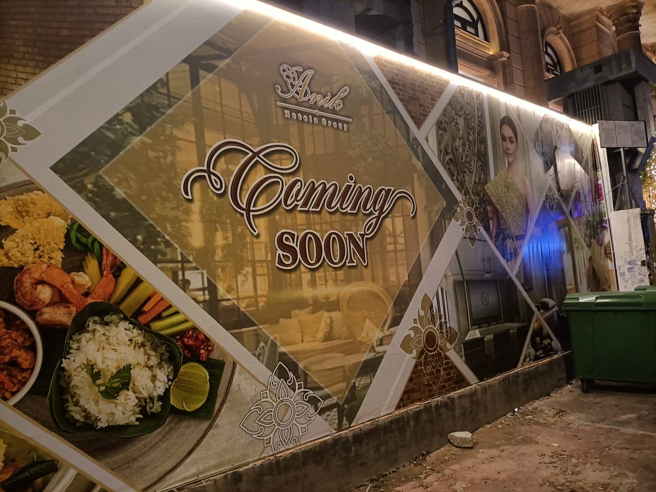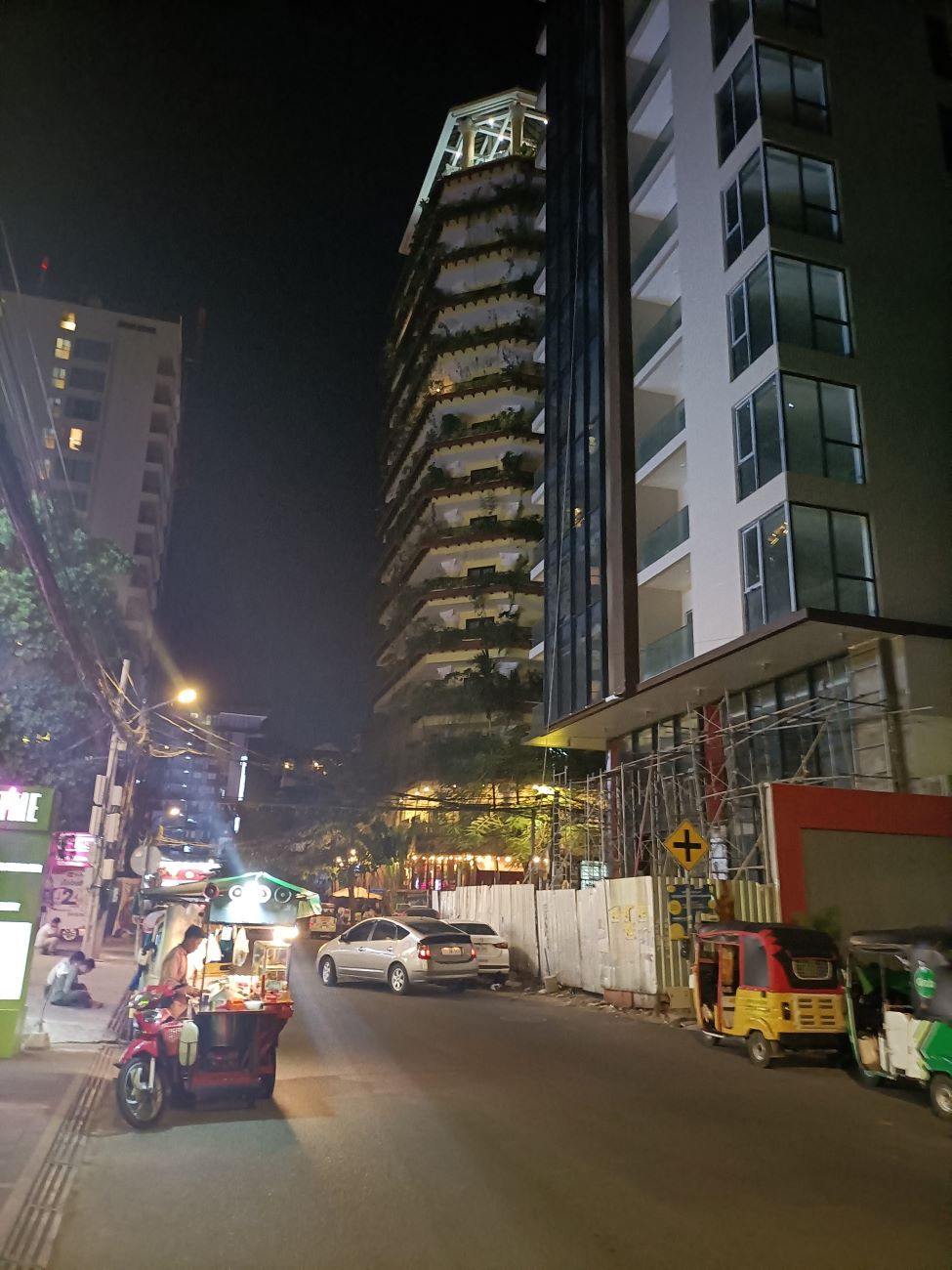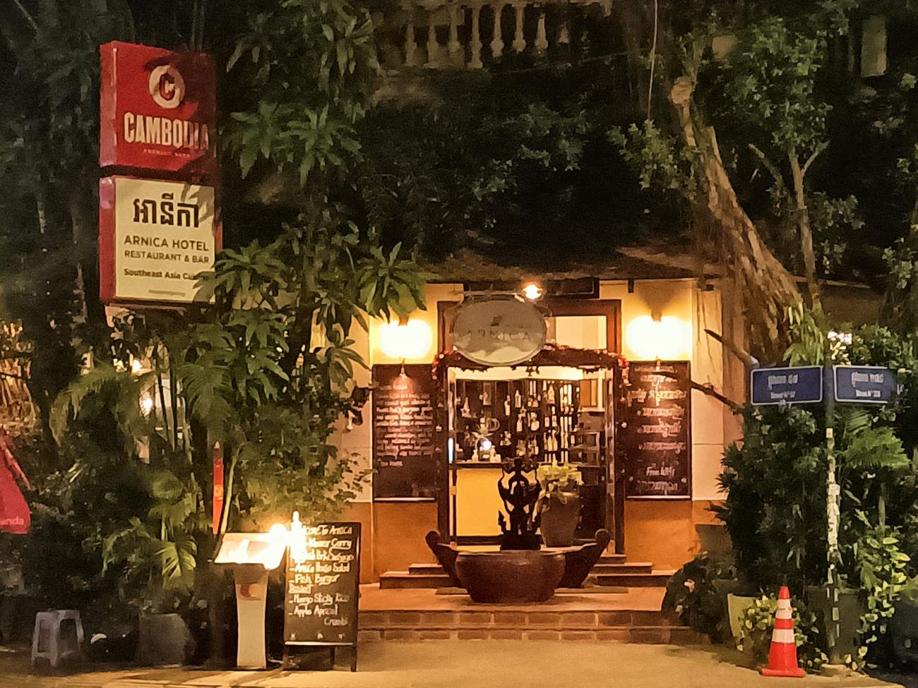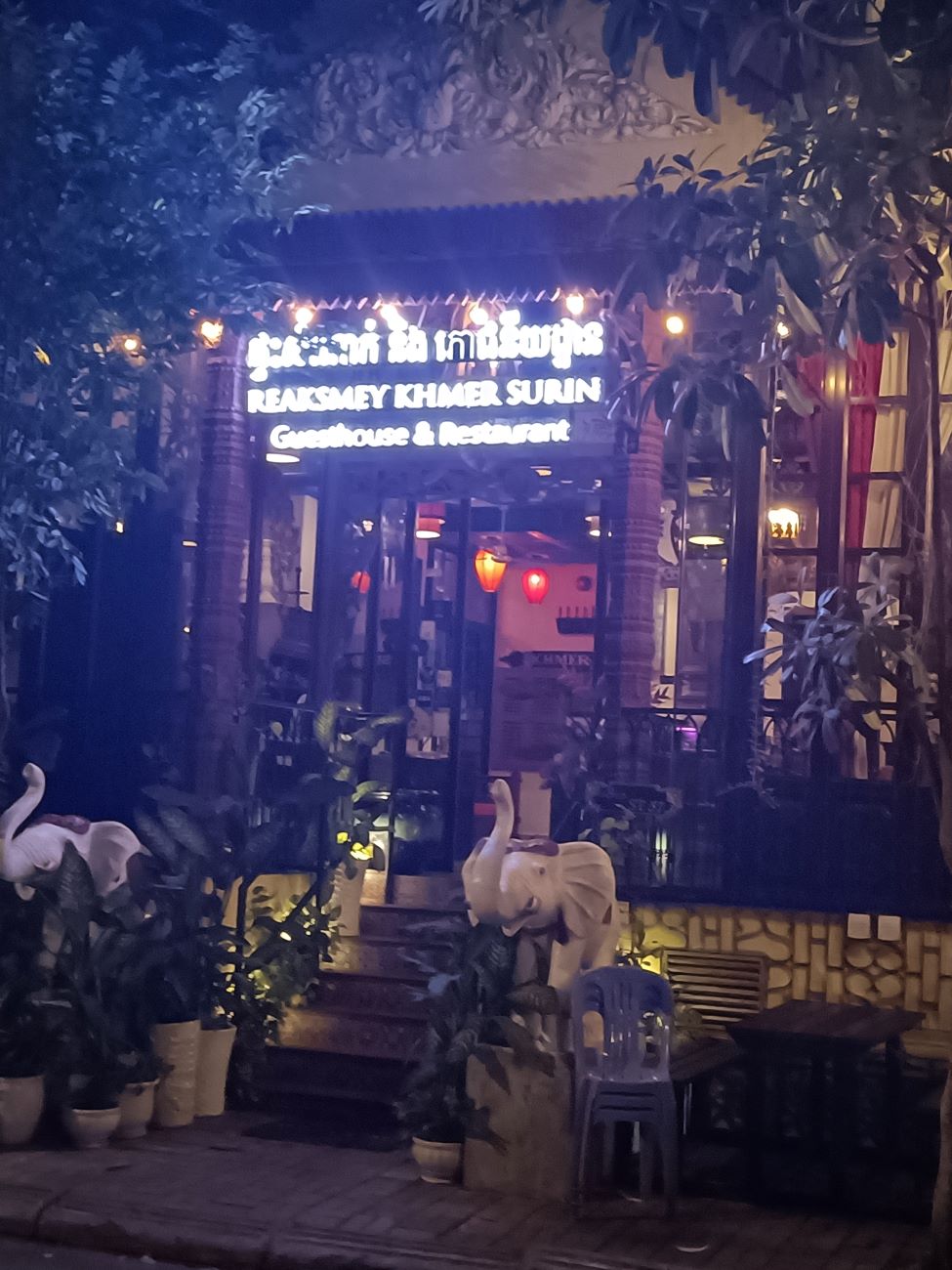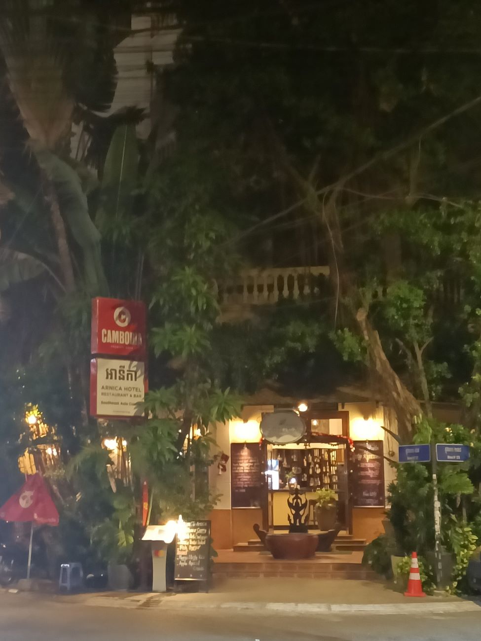 Mi arrivano messaggi di amici da tutti i media che chiedono come sto. Esco solo una mezz’oretta facendo due passi fino ad un ristorante vicinissimo all’hotel giusto per mangiare un boccone. Ma non ho una gran fame. Al ritorno faccio qualche foto al nuovo ristorante Khmer Surin e a quello che era Anise, da quest’anno Arnica, che mi ricordano i tempi in cui siamo venuti con gli altri amici cambogenitori per l’adozione dei nostri ragazzi nel 2007. Faccio anche foto al cantiere per l’ampliamento dell’Anik Palace e alla lobby decorata con addobbi natalizi. / I get messages from friends from all the media asking how I am doing. I only go out for half an hour taking a walk to a restaurant very close to the hotel just to get a bite to eat. But I am not very hungry. On the way back I take a few photos of the new Khmer Surin restaurant and what used to be Anise, from this year Arnica, which remind me of the times we came with our other camboparents friends to adopt our boys in 2007. I also take photos of the construction site for the Anik Palace expansion and the lobby decorated with Christmas decorations.