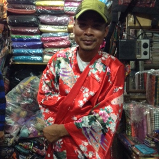 A piede raggiungiamo il Mercato Russo. È già pieno ma andiamo subito alla nostra solito bancarella. E grande, fronteggia su due passaggi, ma lo spazio dentro è davvero limitato, formato Cambogiani snelle non per me. Mi danno un sgabello e per le prossime tre ore, guardo, scelgo, mercanteggio con la commessa che conosce bene sia Franco sia me. Non trovo tutto quello che ho su la lista, fa niente, mi propongano cose nuove. Scelgo, scarto, questo sì, questo no. Poi arrivano tre, diciamo solo Europei, e bloccano tutta il negozio. Aspetto paziente, non riesco neanche a muovermi, a momenti mi pestano i piedi rannicchiata nel mio angolo. Finalmente se ne vanno. Mi danno una bottiglietta d’acqua e vado avanti con i miei acquisti. Basta, due enormi borse di quasi 15 kg. Poi in albergo ho quello che Franco ha dovuto lasciare in Novembre perché il bagaglio era sovra peso. Spero di farcela.