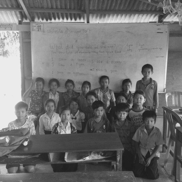 We changed the subject to animals. I show them some flash cards and they have to tell me if they know the name of it, then I choose somebody to come and write the name on the board. They put their hands up even if they don’t know how to write it, but that’s okay, otherwise how would they learn? Last game is “what did you see at the zoo?” where they were taken in November. One by one they came and wrote and they we surprisingly good. It amazes me, not every time I come here, not every day but at every lesson how much enthusiasm of these kids have for learning outside the state school. We are in the middle of rice fields, they all come from very poor families and they come not just for the help we give them, not for the snacks or games, they TRULY want to study. They are to be admired.