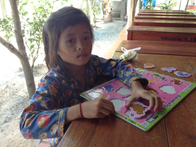 Lunch break, but by midday I already have a little girl here playing with a new puzzle with animals which I have brought, after I had sent her to wash her hands! Finishing the puzzle with a small suggestion to look where the tabs for lifting the pieces out were, I told her the names of the animals and she repeated them. She was really good even with hippopotamus and rhinoceros .