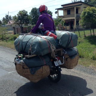 Domenica giornata di shopping. Andando nel ristorante alle 7,30, orario di apertura, speravo di trovare poca gente invece era già pienissimo. Ieri tutti prendevano uova fritte ed io ho preso un crêpe con cioccolata, tanto per non fare la fila. Stamattina erano tutti in fila per i crêpes allora ho preso le uova fritta! Alle otto e mezza partenza per il centro dove abbiamo caricato Mr To, Theara, Bunthy e Samphors e via per Kampot a circa 17 km di distanza. Ogni anno per i ragazzi questo viaggio è un avventura. Abbiamo giocato a scegliere le case più belle, Theara e Bunthy mi hanno fatto vedere la loro scuola, abbiamo passato due fiorai e le ragazze si sono eccitate tantissimo. To mi ha spiegato era perché li piacciano le rose ma costano molto.