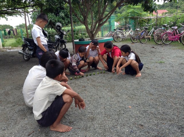 Stamattina no ho preso la mia classe di piccoli, ho scambiato con Kimlan che avrebbe dovuto insegnare alla classe dei più grandi della mattinata è che avevano già fatto una lezione d’inglese dalle 7,30 alle 8,30. Questo perché prima di tutto volevo vedere il loro livello d’inglese e secondo perché è la mia intenzione di premiare i migliori delle varie classe l’ultimo giorno. In una lezione solo era difficile giudicare, purtroppo non sono al livello della stessa classe pomeridiano, inoltre alcuni mancavano, probabilmente con le risaie pieno d’acqua i genitori gli hanno tenuti a casa a lavorare. / This morning I exchanged my class of little ones for the class of bigger children who had already had an English lesson from 7,30 to 8,30. This, above all, because I wanted to see their level of English and because it is my intention to give a prize to the best student in each class on the last day. In just one lesson it was difficult to judge, but unfortunately the level of this class compared to the afternoon class is not so good, also a few students were missing, probably because of the rice fields being full of water they had been kept the at home to help.