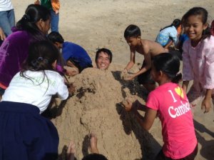 Just after 8 o’clock a giant tuk-tuk arrived at Kep beach with 18 very excited children ready to enjoy a morning on the beach.