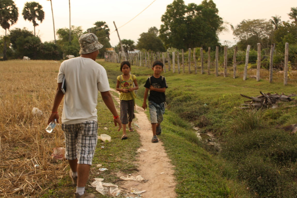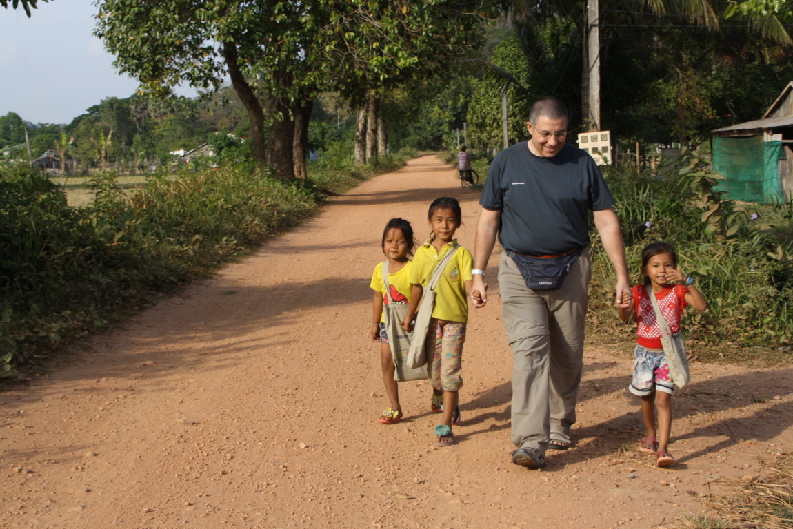 Mentre torniamo dal nostro giro delle famiglie, incontriamo una fila dei nostri bambini che rientrano dopo la fine delle lezioni al Centro. Ci salutano tutti con grandi sorrisi, con le mani giunte quelli a piedi, con un cenno della mano quelli in bicicletta. L’ultima della fila è una bimba. Ancora lei. Mi si avvicina con l’usuale saluto e poi mi riabbraccia e mi stende con un sorriso e i suoi occhoni neri ………. See you tomorrow teacher….. Chumriaplia….. Arrivederci….