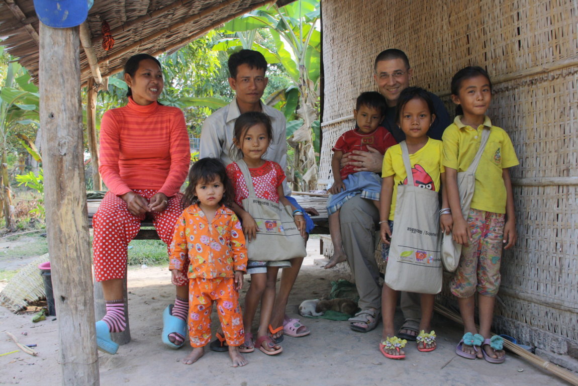 In una delle famiglie, dove ci sono tre bambini da uno a 5 anni, ci dicono che fanno due soli pasti al giorno, a base di riso bollito. La povertà è veramente estrema, anche se, come ho sempre detto, i cambogiani sono molto dignitosi pur nella loro povera condizione. Quello che fa più rabbia è che a non molti chilometri di distanza c’è gente che viaggia con macchine che nemmeno noi occidentali ci possiamo permettere.